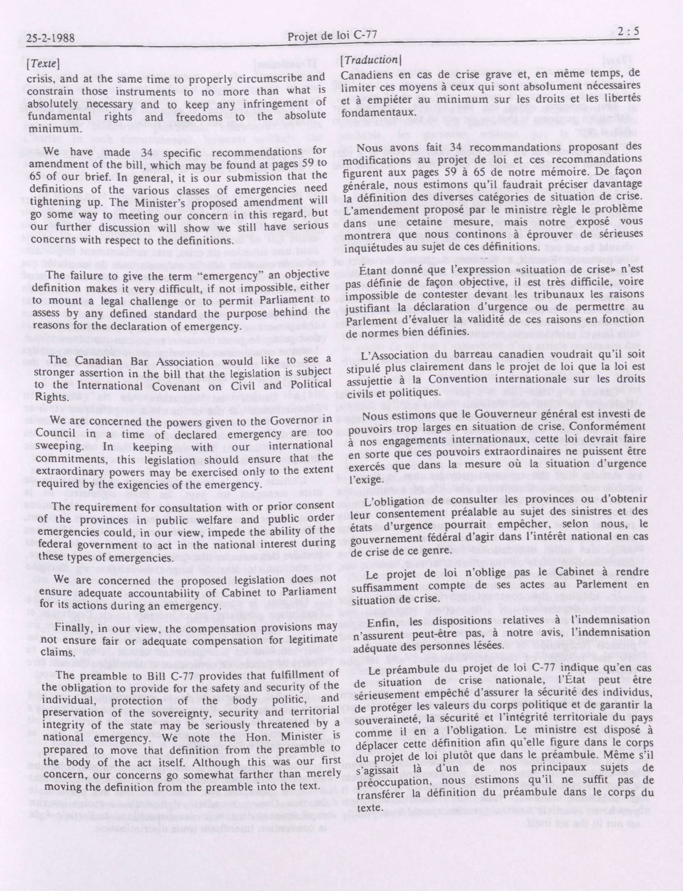 House of Commons Committees, 33rd Parliament, 2nd Session : Legislative Committee on Bill C-77, an Act to amend the taking of special temporary measures to ensure safety and security during national emergencies and to amend other Acts in consequence thereof, vol. 1 no. 1-9 = Comités de la Chambre des communes, 33e Législature, 2e Session : Comité législatif sur le projet de loi C-77, Loi visant à autoriser à titre temporaire des mesures extraordinaires de sécurité en situation de crise nationale et à modifier d'autres lois en conséquence, vol. 1 no. 1-9