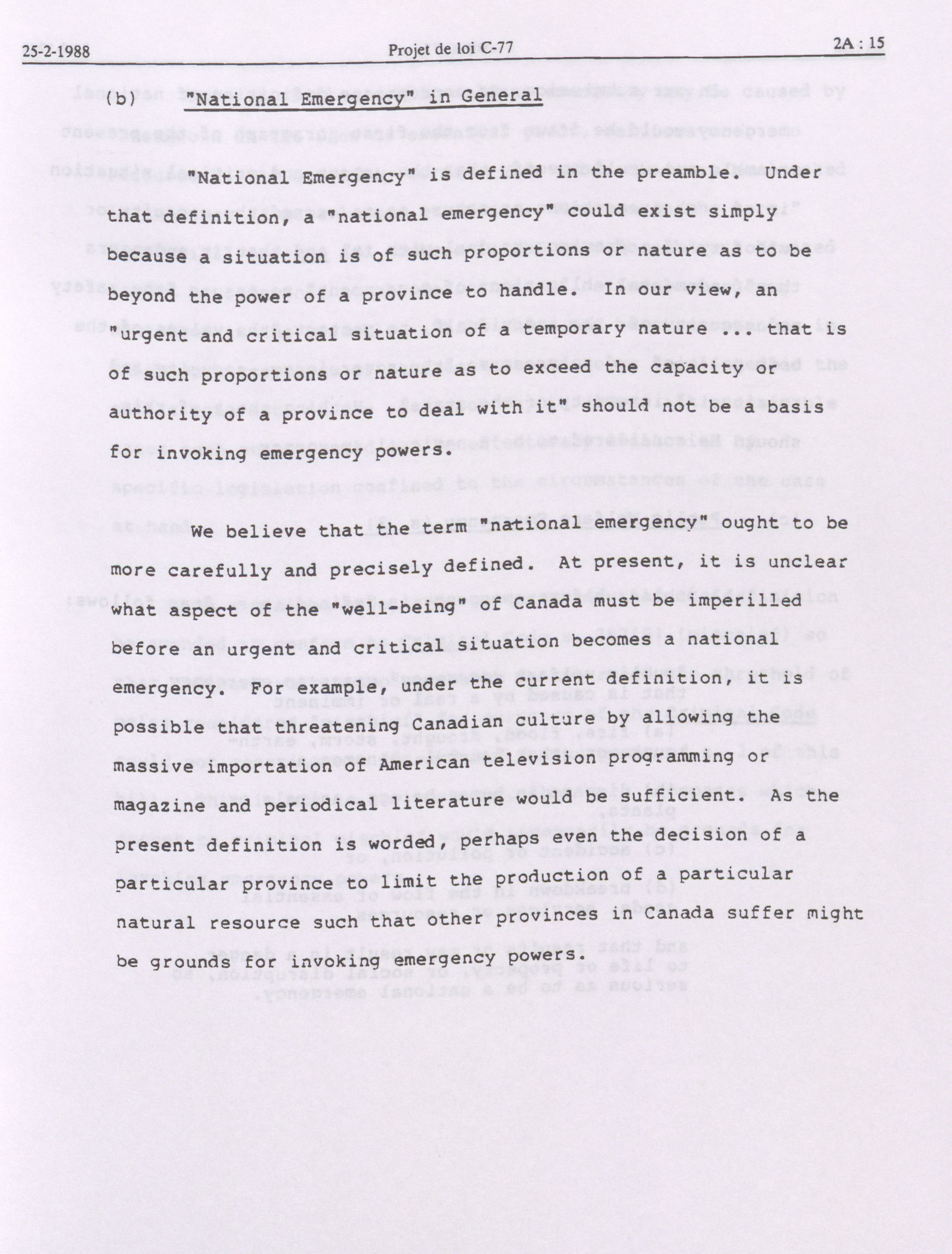 House of Commons Committees, 33rd Parliament, 2nd Session : Legislative Committee on Bill C-77, an Act to amend the taking of special temporary measures to ensure safety and security during national emergencies and to amend other Acts in consequence thereof, vol. 1 no. 1-9 = Comités de la Chambre des communes, 33e Législature, 2e Session : Comité législatif sur le projet de loi C-77, Loi visant à autoriser à titre temporaire des mesures extraordinaires de sécurité en situation de crise nationale et à modifier d'autres lois en conséquence, vol. 1 no. 1-9