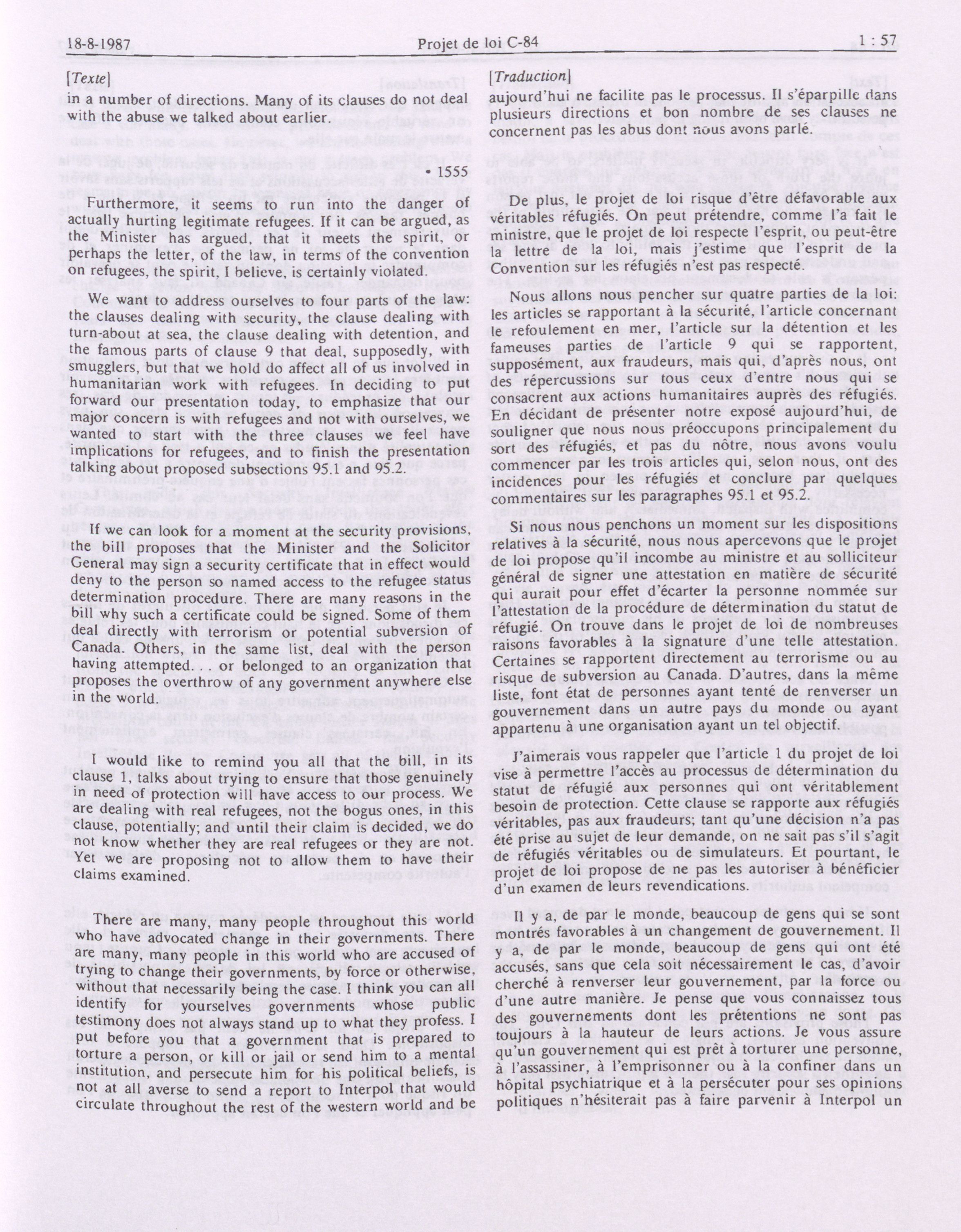 House of Commons Committees, 33rd Parliament, 2nd Session : Legislative Committee on Bill C-84, an Act to amend the Immigration Act, 1976 and the Criminal Code in consequence thereof, vol. 1 no. 1-9 = Comités de la Chambre des communes, 33e Législature, 2e Session : Comité législatif sur le projet de loi C-84, Loi modifiant la Loi sur l'immigration de 1976 et apportant des modifications corrélatives au Code criminel, vol. 1 no. 1-9