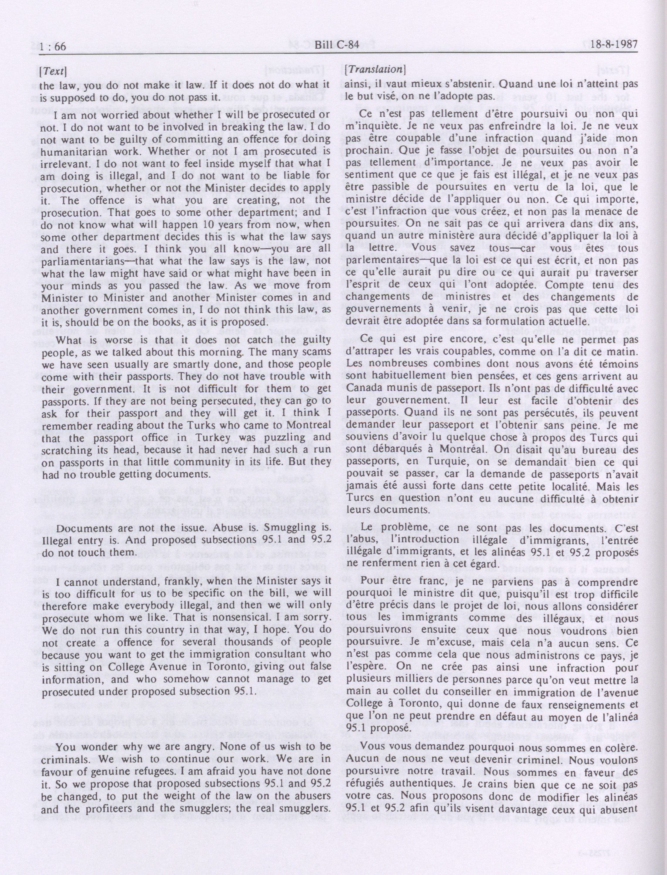 House of Commons Committees, 33rd Parliament, 2nd Session : Legislative Committee on Bill C-84, an Act to amend the Immigration Act, 1976 and the Criminal Code in consequence thereof, vol. 1 no. 1-9 = Comités de la Chambre des communes, 33e Législature, 2e Session : Comité législatif sur le projet de loi C-84, Loi modifiant la Loi sur l'immigration de 1976 et apportant des modifications corrélatives au Code criminel, vol. 1 no. 1-9