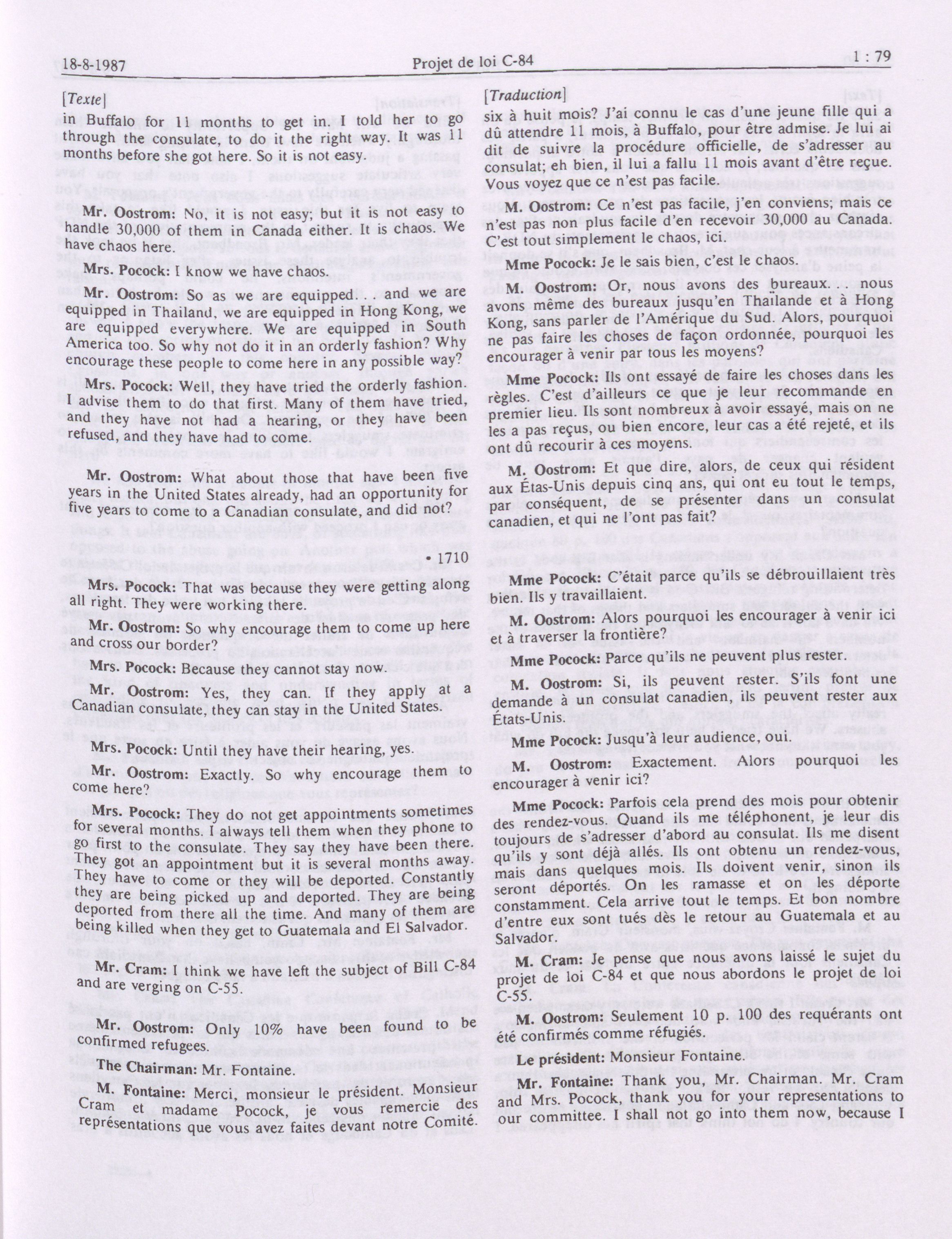 House of Commons Committees, 33rd Parliament, 2nd Session : Legislative Committee on Bill C-84, an Act to amend the Immigration Act, 1976 and the Criminal Code in consequence thereof, vol. 1 no. 1-9 = Comités de la Chambre des communes, 33e Législature, 2e Session : Comité législatif sur le projet de loi C-84, Loi modifiant la Loi sur l'immigration de 1976 et apportant des modifications corrélatives au Code criminel, vol. 1 no. 1-9