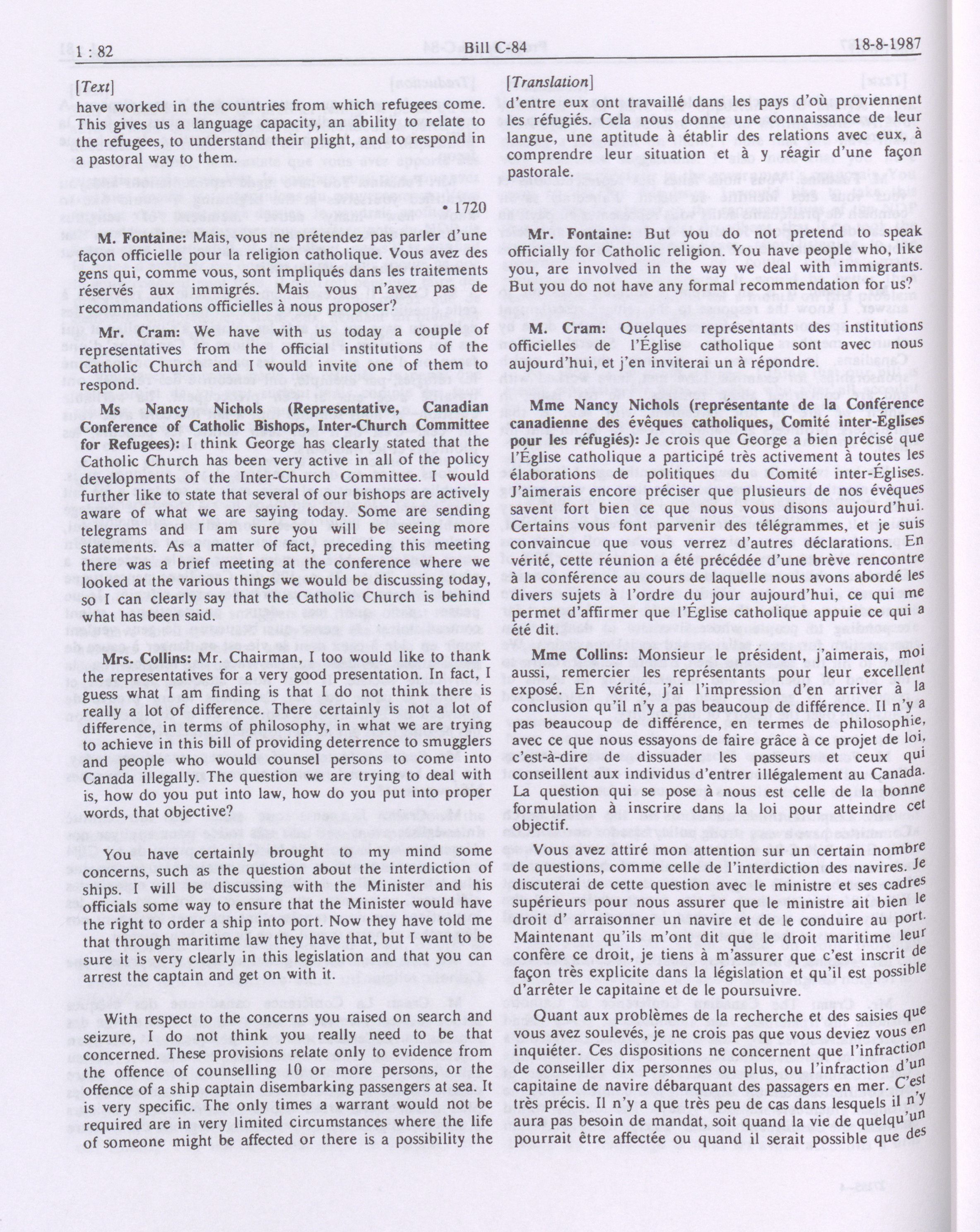 House of Commons Committees, 33rd Parliament, 2nd Session : Legislative Committee on Bill C-84, an Act to amend the Immigration Act, 1976 and the Criminal Code in consequence thereof, vol. 1 no. 1-9 = Comités de la Chambre des communes, 33e Législature, 2e Session : Comité législatif sur le projet de loi C-84, Loi modifiant la Loi sur l'immigration de 1976 et apportant des modifications corrélatives au Code criminel, vol. 1 no. 1-9