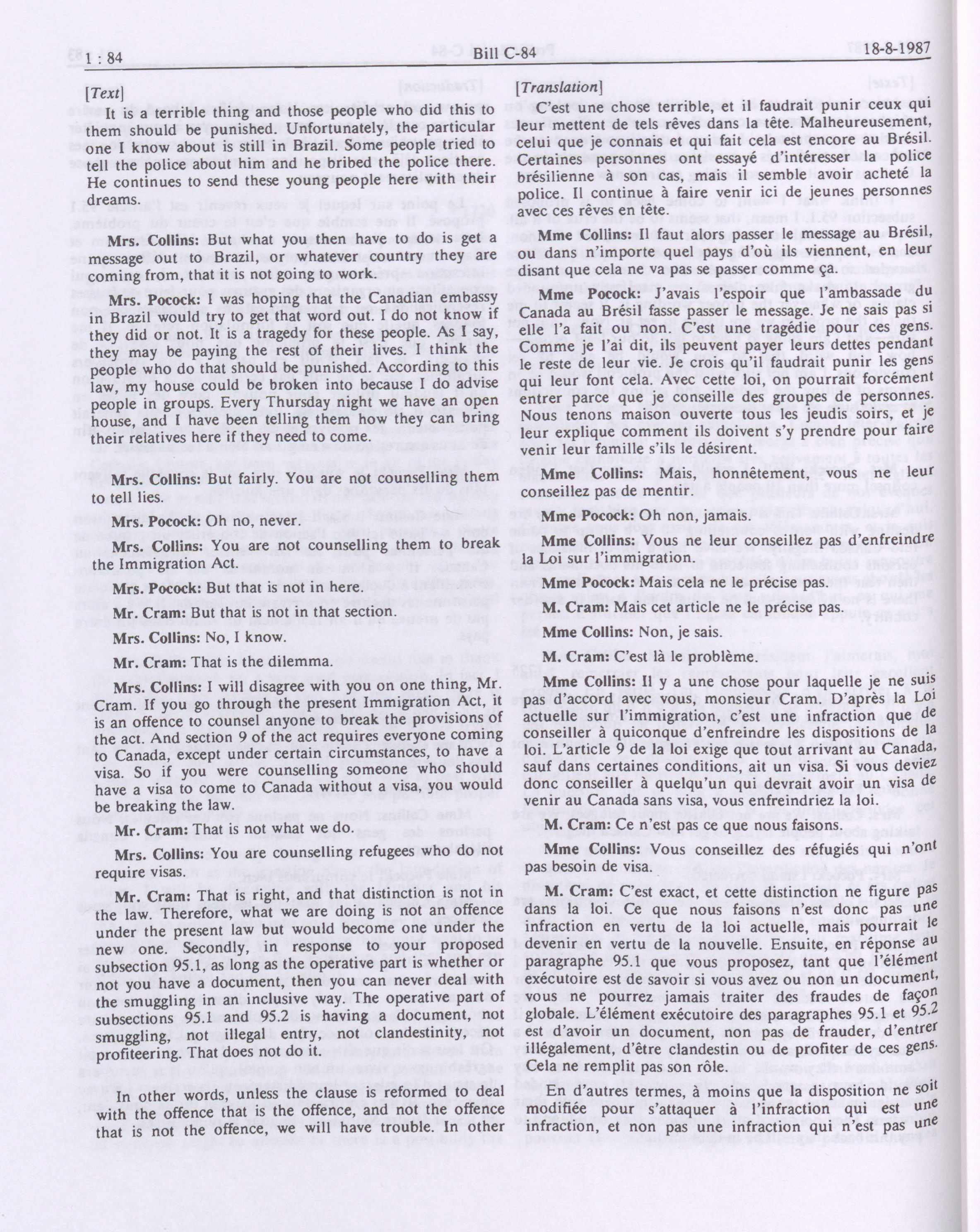 House of Commons Committees, 33rd Parliament, 2nd Session : Legislative Committee on Bill C-84, an Act to amend the Immigration Act, 1976 and the Criminal Code in consequence thereof, vol. 1 no. 1-9 = Comités de la Chambre des communes, 33e Législature, 2e Session : Comité législatif sur le projet de loi C-84, Loi modifiant la Loi sur l'immigration de 1976 et apportant des modifications corrélatives au Code criminel, vol. 1 no. 1-9