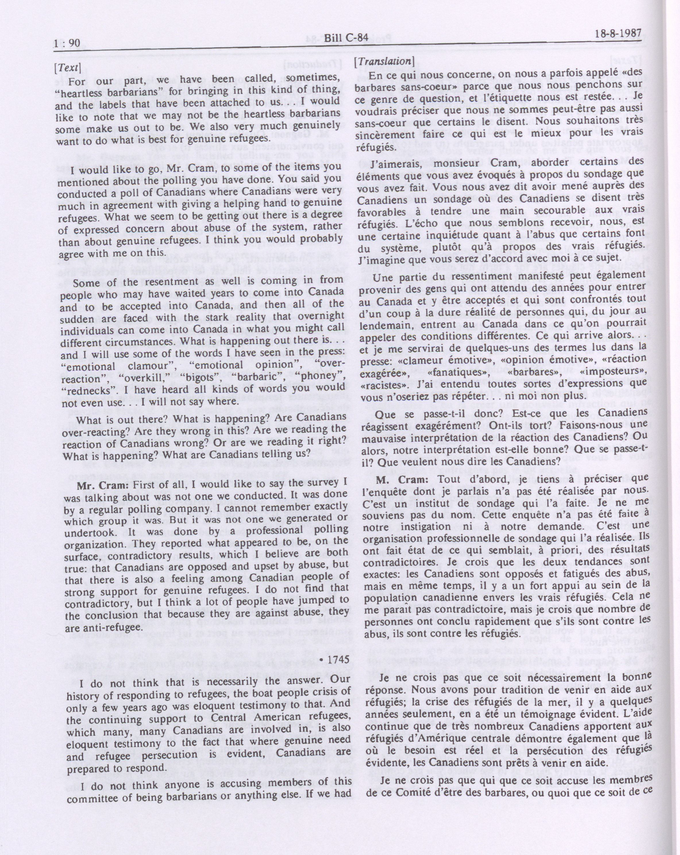 House of Commons Committees, 33rd Parliament, 2nd Session : Legislative Committee on Bill C-84, an Act to amend the Immigration Act, 1976 and the Criminal Code in consequence thereof, vol. 1 no. 1-9 = Comités de la Chambre des communes, 33e Législature, 2e Session : Comité législatif sur le projet de loi C-84, Loi modifiant la Loi sur l'immigration de 1976 et apportant des modifications corrélatives au Code criminel, vol. 1 no. 1-9