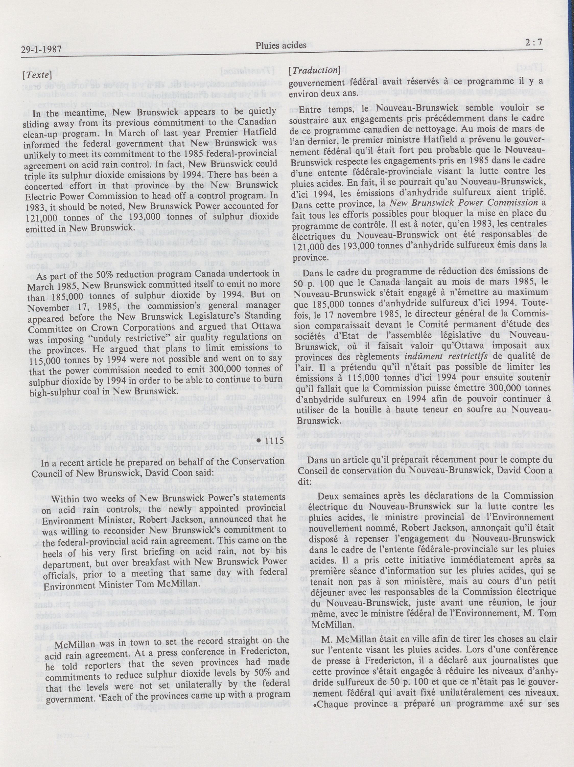 House of Commons Committees, 33rd Parliament, 2nd Session : Special Committee on Acid Rain, vol. 1 = Comités de la Chambre des communes, 33e Législature, 2e Session : Comité spécial sur les pluies acides, vol. 1