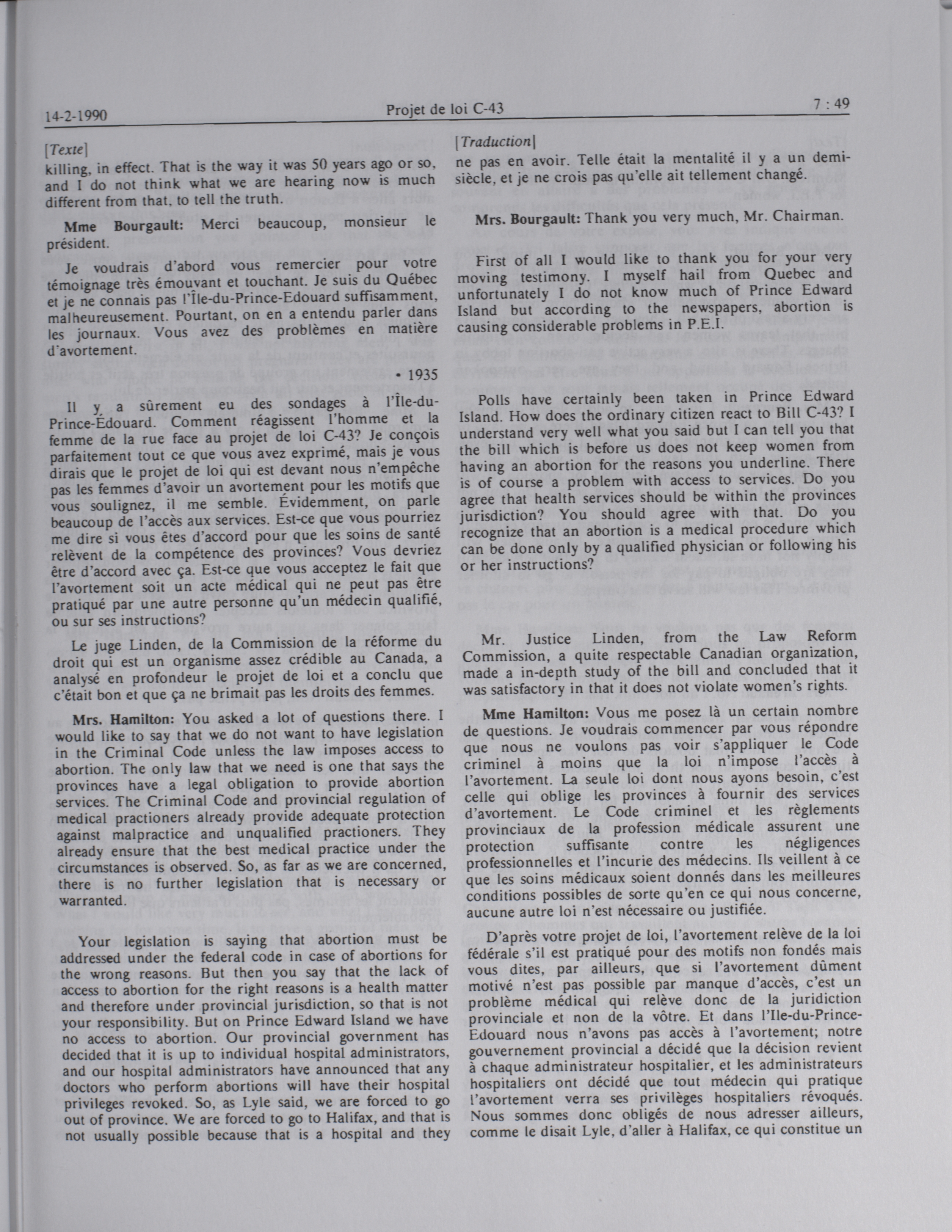 House of Commons Committees, 34th Parliament, 2nd Session : Legislative Committee on Bill C-43, an Act respecting abortion, vol. 2 no. 7-13 = Comités de la Chambre des communes, 34e Législature, 2e Session : Comité législatif sur le projet de loi C-43, Loi concernant l'avortement, vol. 2 no. 7-13