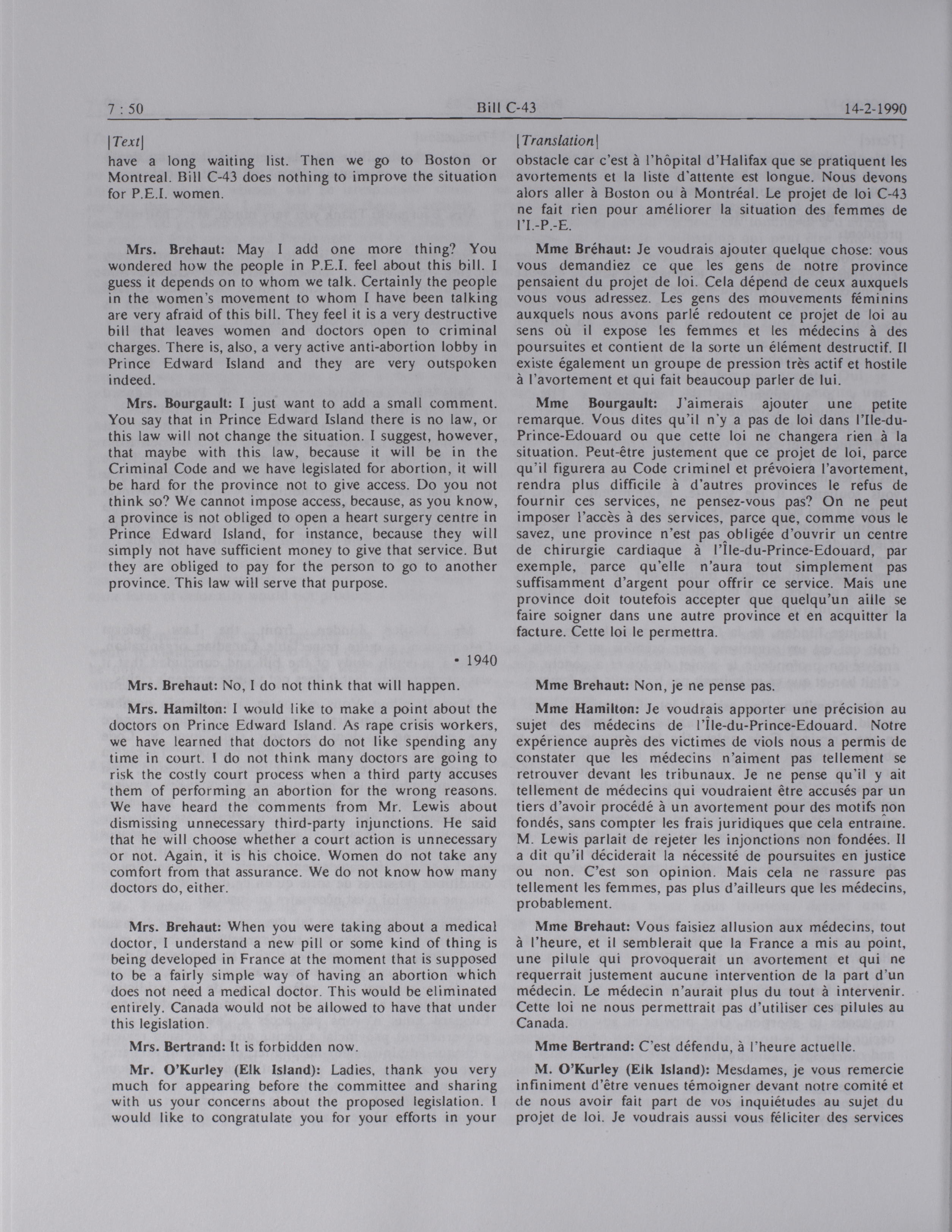 House of Commons Committees, 34th Parliament, 2nd Session : Legislative Committee on Bill C-43, an Act respecting abortion, vol. 2 no. 7-13 = Comités de la Chambre des communes, 34e Législature, 2e Session : Comité législatif sur le projet de loi C-43, Loi concernant l'avortement, vol. 2 no. 7-13