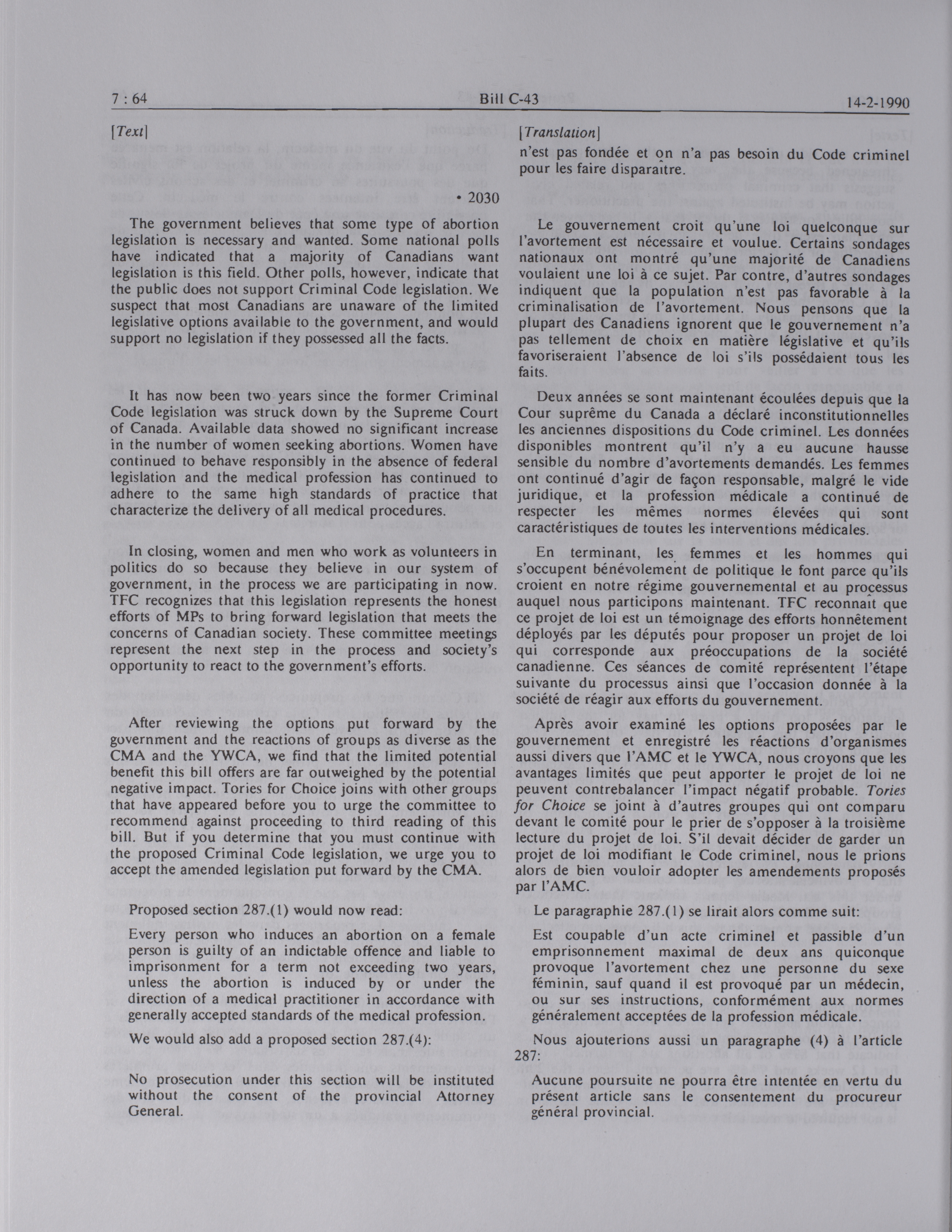 House of Commons Committees, 34th Parliament, 2nd Session : Legislative Committee on Bill C-43, an Act respecting abortion, vol. 2 no. 7-13 = Comités de la Chambre des communes, 34e Législature, 2e Session : Comité législatif sur le projet de loi C-43, Loi concernant l'avortement, vol. 2 no. 7-13