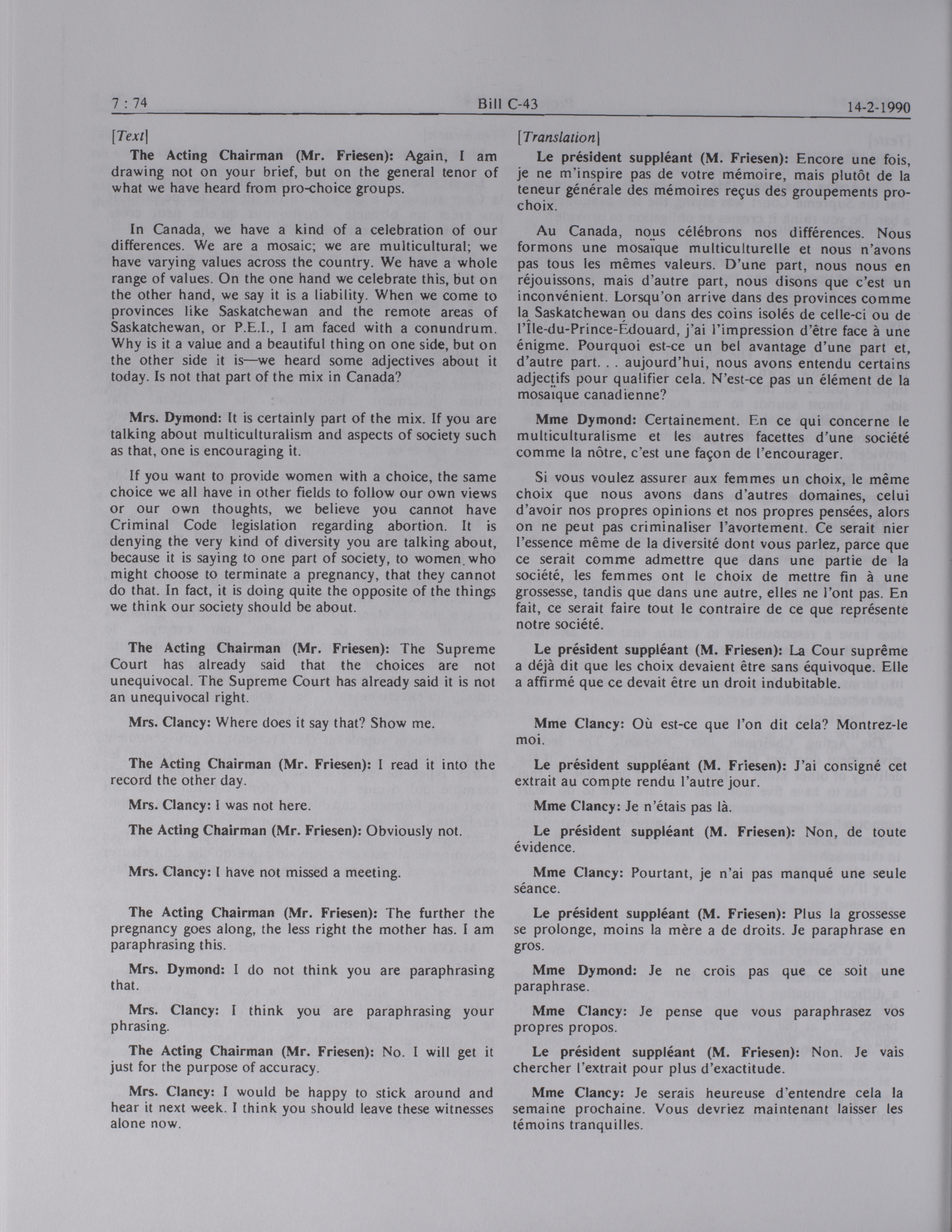 House of Commons Committees, 34th Parliament, 2nd Session : Legislative Committee on Bill C-43, an Act respecting abortion, vol. 2 no. 7-13 = Comités de la Chambre des communes, 34e Législature, 2e Session : Comité législatif sur le projet de loi C-43, Loi concernant l'avortement, vol. 2 no. 7-13