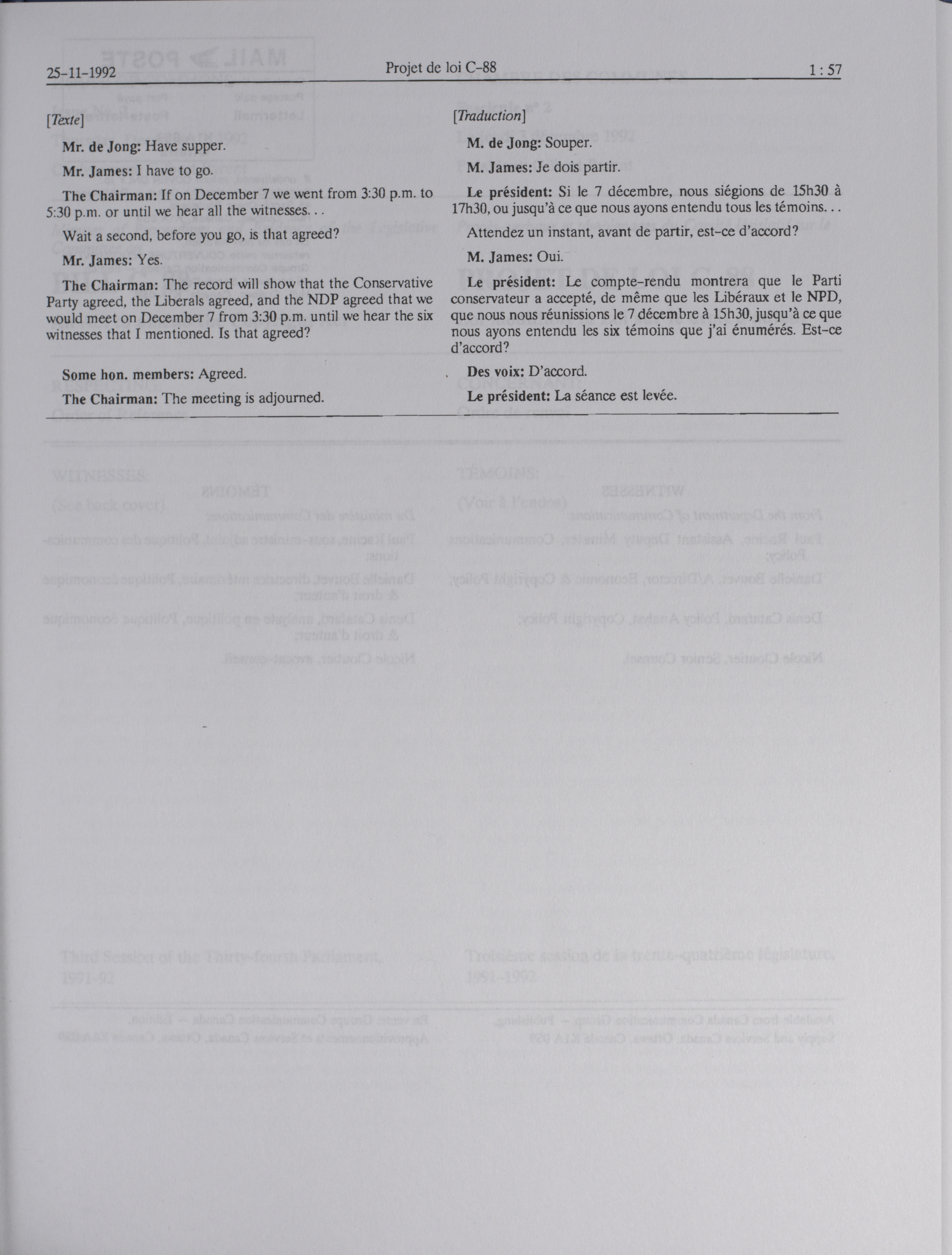 House of Commons Committees, 34th Parliament, 3rd Session : Legislative Committee on Bill C-88, an Act to amend the Copyright Act, vol. 1 no. 1-6 = Comités de la Chambre des communes, 34e Législature, 3e Session : Comité législatif sur le projet de loi C-88, Loi modifiant la Loi sur le droit d'auteur, vol. 1 no. 1-6