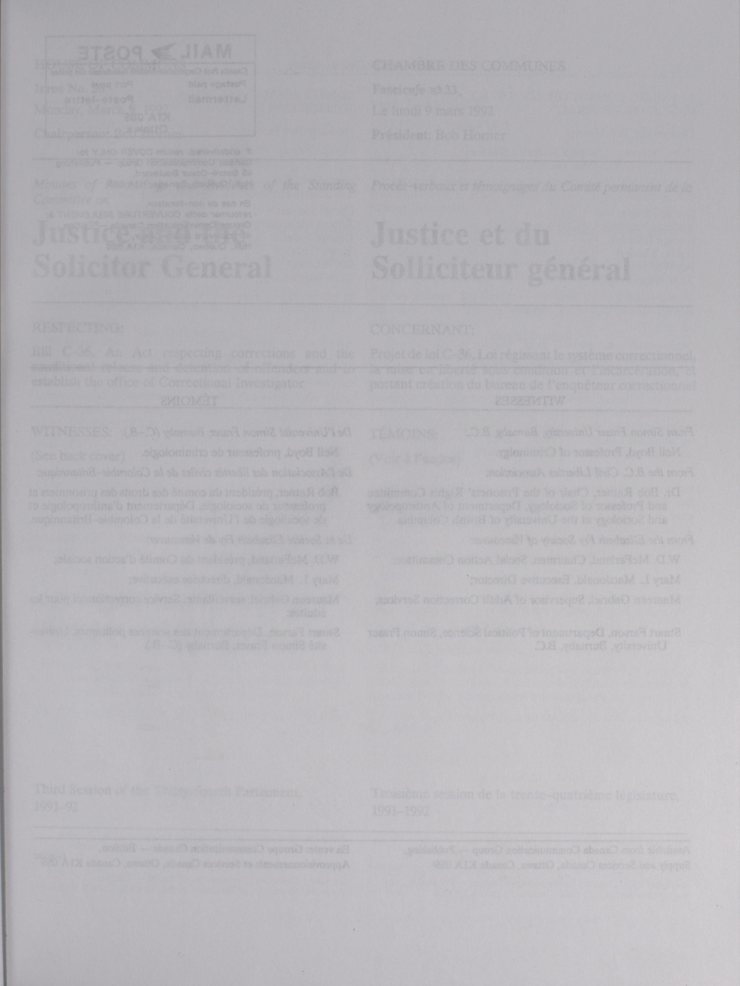 House of Commons Committees, 34th Parliament, 3rd Session : Standing Committee on Justice and Solicitor General, vol. 2 no. 32-54 = Comités de la Chambre des communes, 34e Législature, 3e Session : Comité permanent de la justice et Solliciteur général, vol. 2 no. 32-54