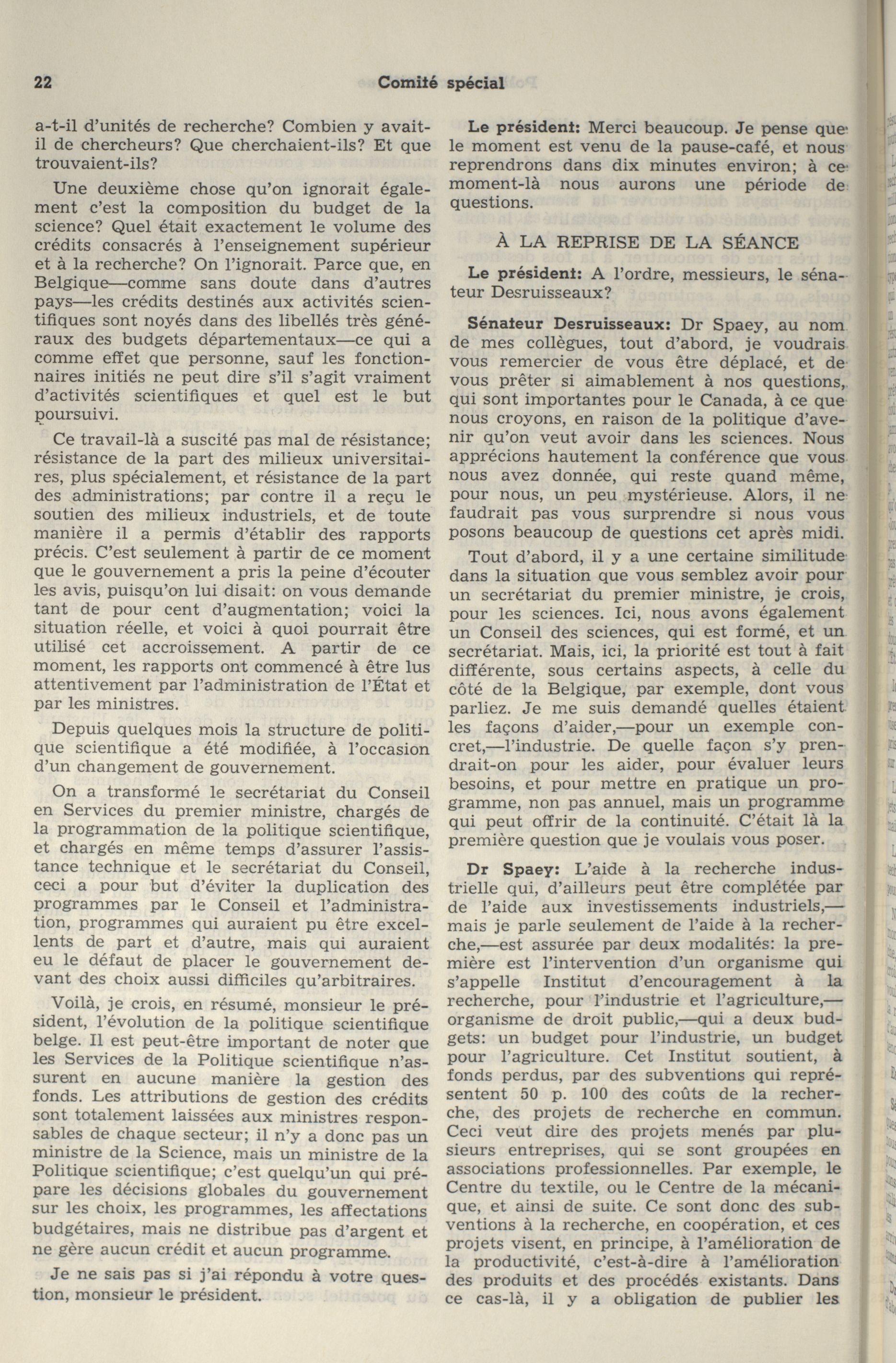 Comités du Sénat, 28e Législature, 1re Session : Comité spécial de la politique scientifique, vol. 1
