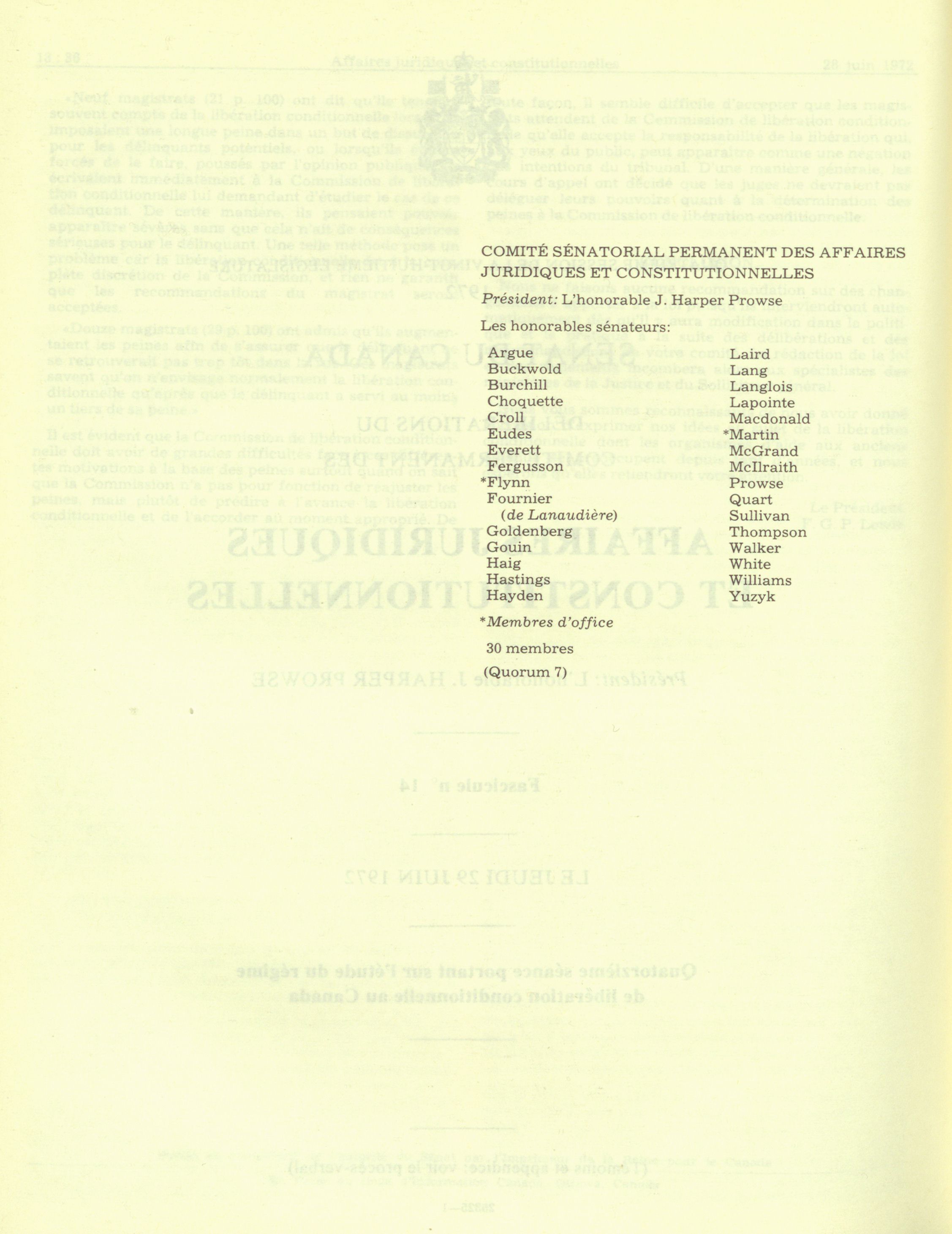 Comités du Sénat, 28e Législature, 4e Session : Comité permanent des affaires juridiques et constitutionnelles, vol. 1