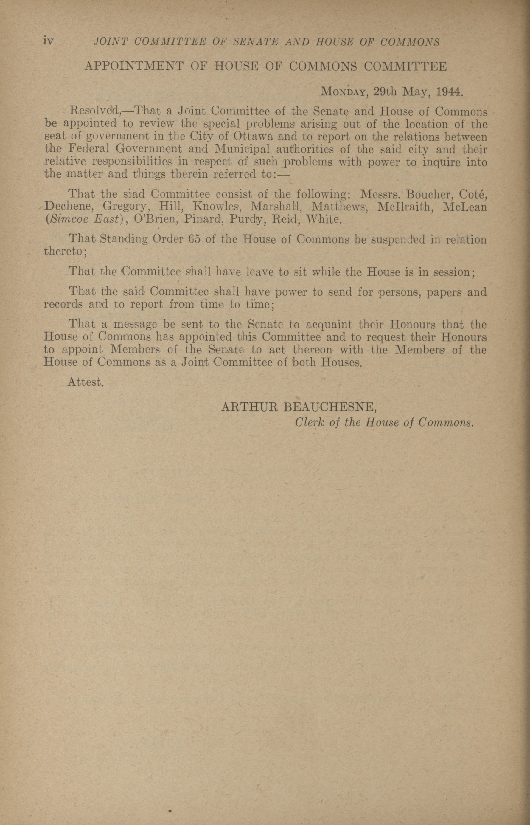 Joint Committees, 19th Parliament, 5th Session : Joint Committee on Location of the Seat of Government in the City of Ottawa, vol. 1