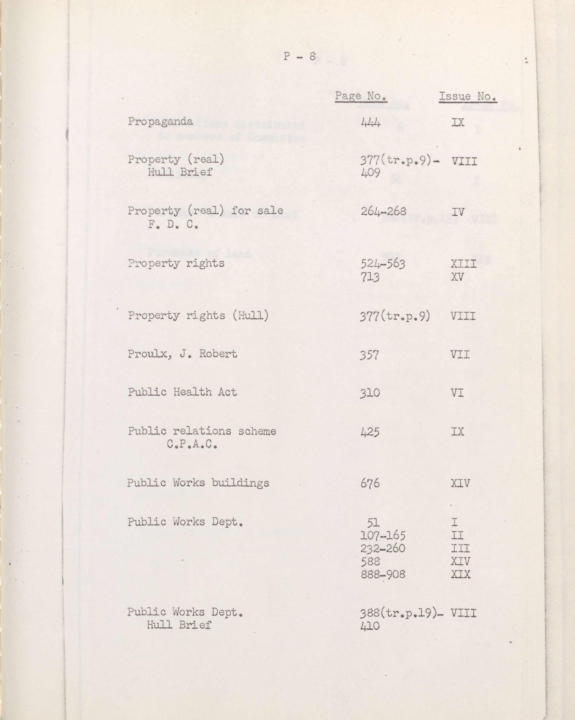 Joint Committees, 22nd Parliament, 3rd Session : Joint Committee on the Federal District Commission, Index