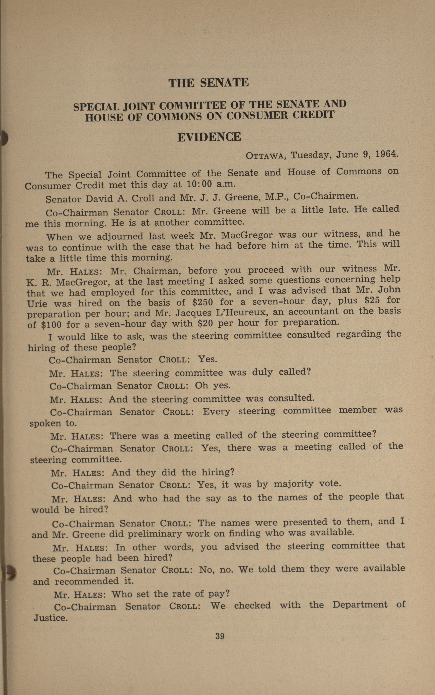 Joint Committees, 26th Parliament, 2nd Session : Special Joint Committee on Consumer Credit, vol. 1