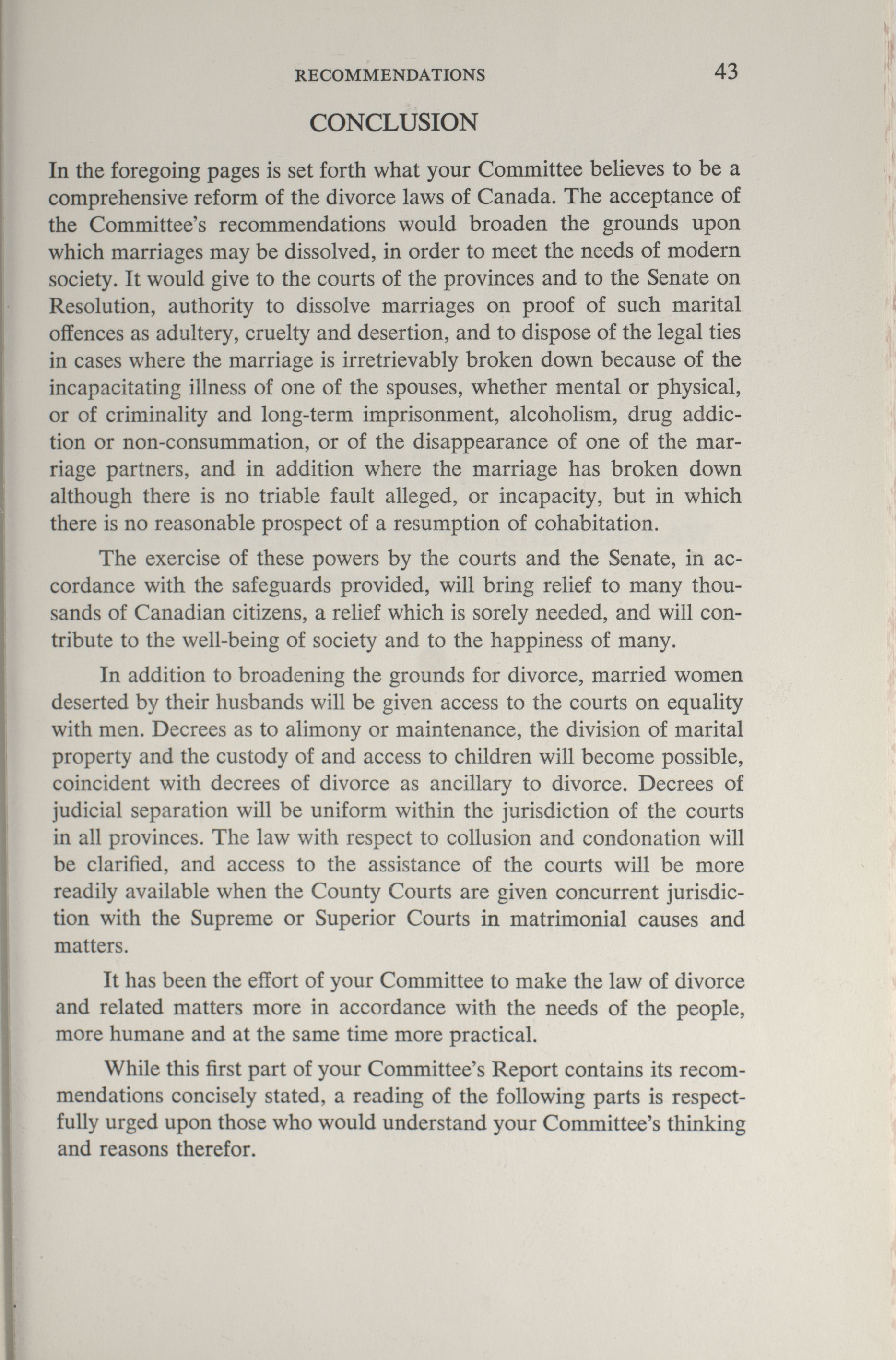 Joint Committees, 27th Parliament, 2nd Session : Special Joint Committee on Divorce, Report