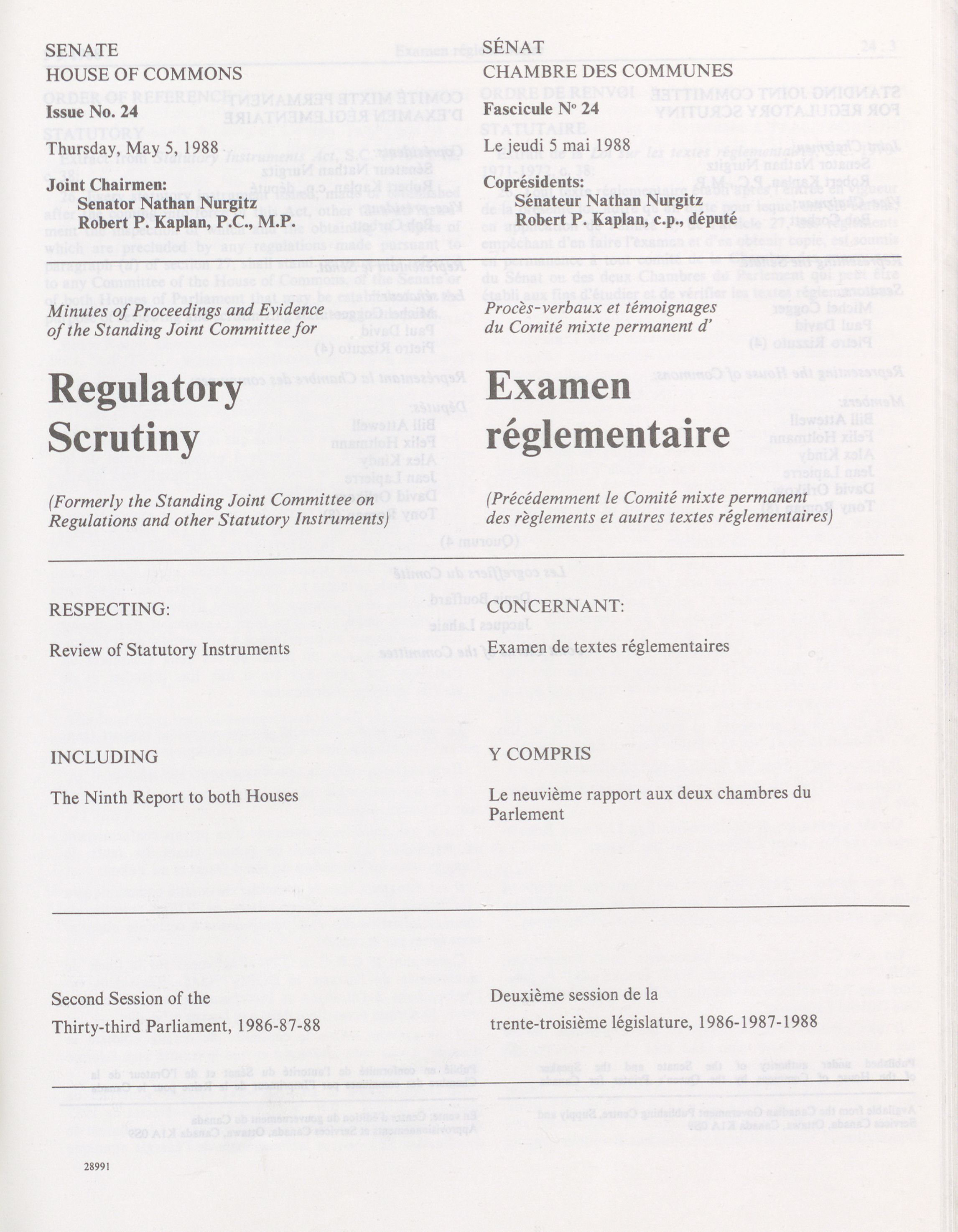 Joint Committees, 33rd Parliament, 2nd Session : Standing Joint Committee on Regulatory Scrutiny (Formerly the Standing Joint Committee on Regulations and other Statutory Instruments, vol. 2 = Comités mixtes, 33e Législature, 2e Session : Comité mixte permanent d'examen réglementaire (Auparavant le Comité mixte permanent des règlements et autres textes réglementaires), vol. 2