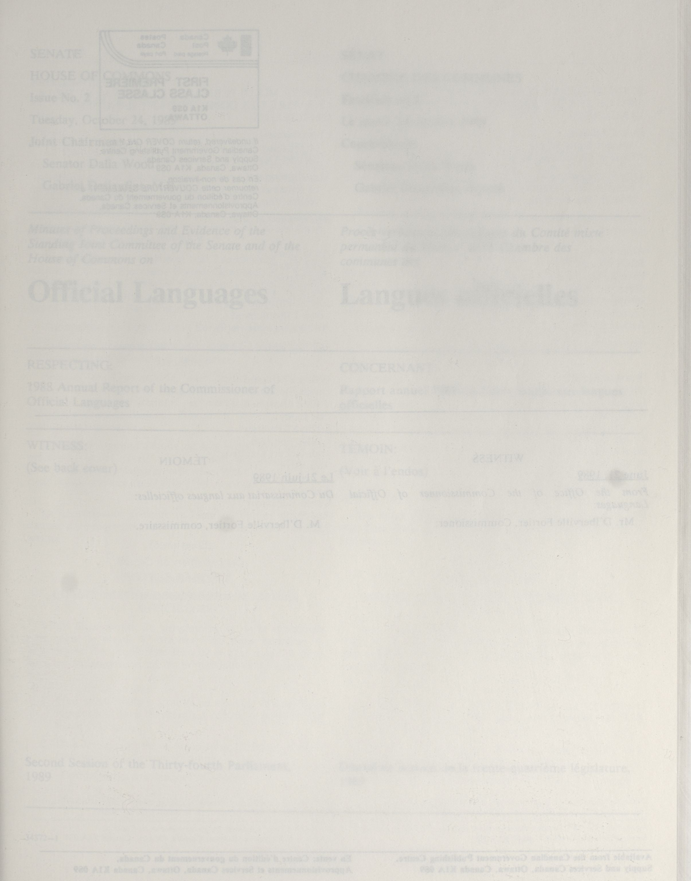 Joint Committees, 34th Parliament, 2nd Session : Standing Joint Committee on Official Languages, vol. 1 = Comités mixtes, 34e Législature, 2e Session : Comité mixte permanent des langues officielles, vol. 1