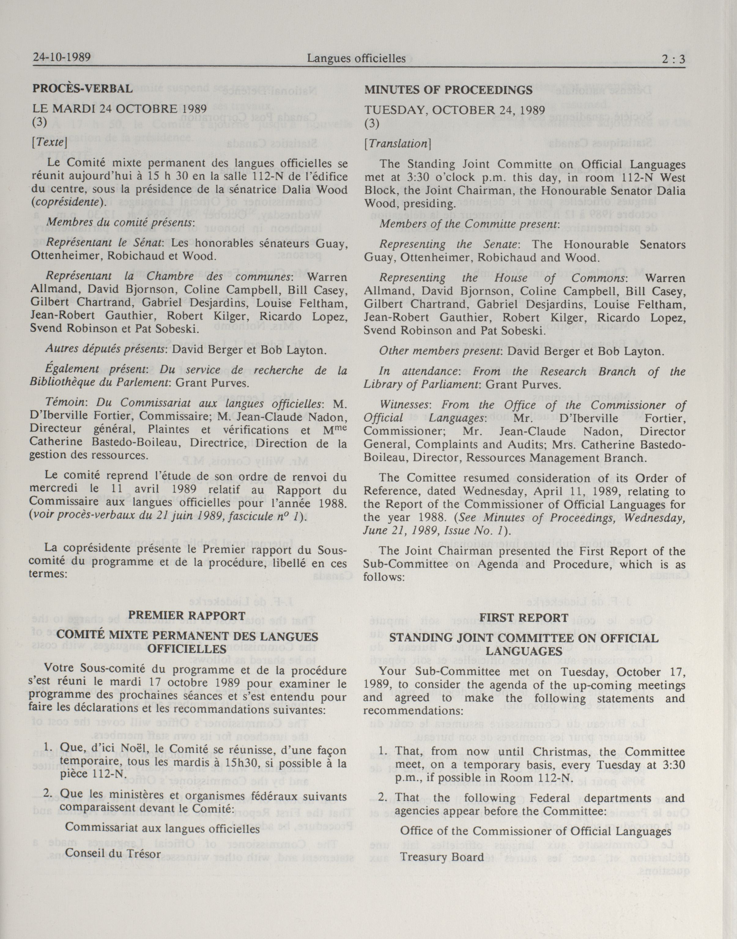 Joint Committees, 34th Parliament, 2nd Session : Standing Joint Committee on Official Languages, vol. 1 = Comités mixtes, 34e Législature, 2e Session : Comité mixte permanent des langues officielles, vol. 1