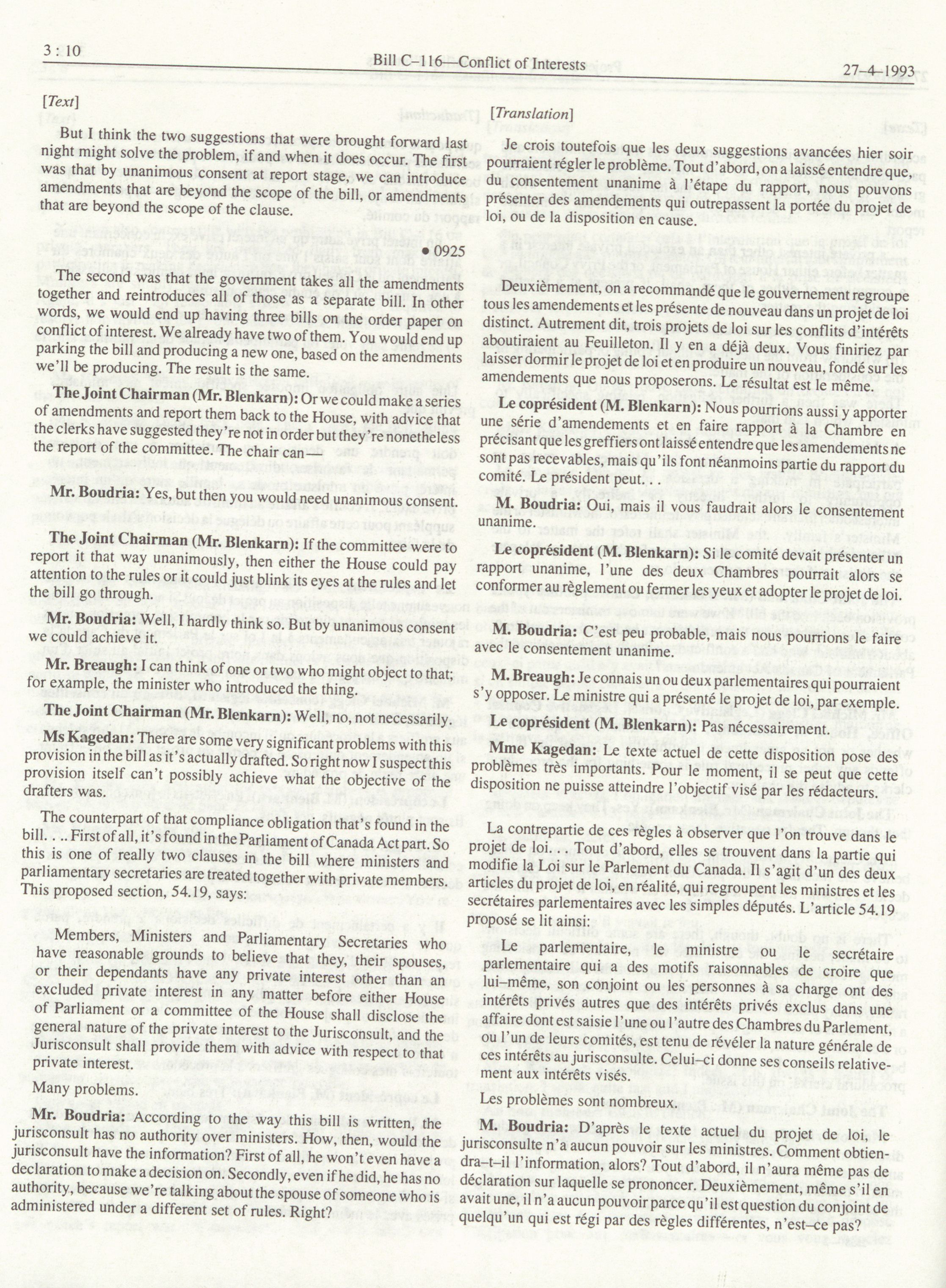 Joint Committees, 34th Parliament, 3rd Session : Special Joint Committee on Bill C-116, Conflit of Interests, vol. 1 = Comités mixtes, 34e Législature, 3e Session : Comité mixte spécial relatif au projet de loi C-116, Conflits d'intérêts, vol. 1