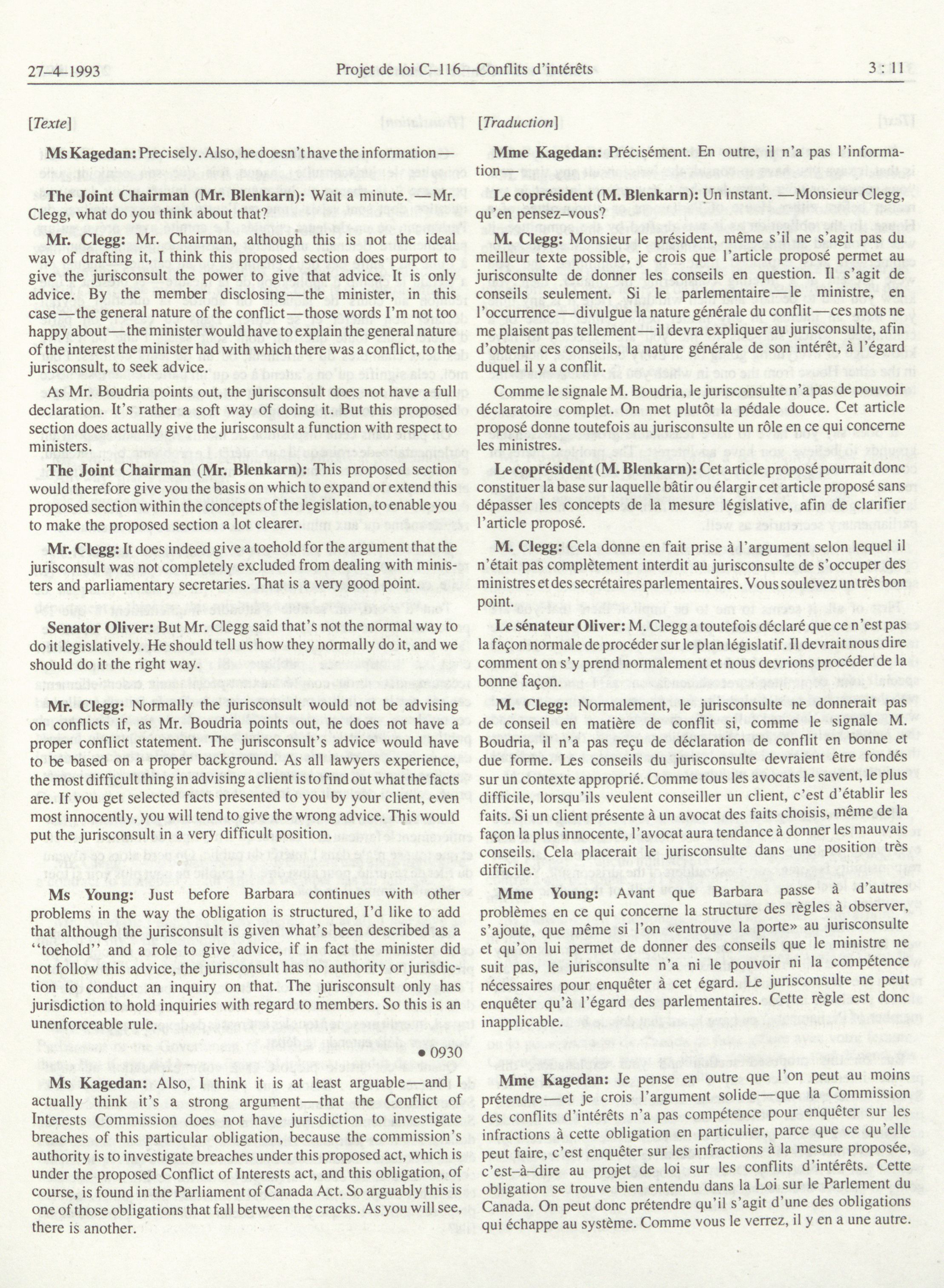Joint Committees, 34th Parliament, 3rd Session : Special Joint Committee on Bill C-116, Conflit of Interests, vol. 1 = Comités mixtes, 34e Législature, 3e Session : Comité mixte spécial relatif au projet de loi C-116, Conflits d'intérêts, vol. 1