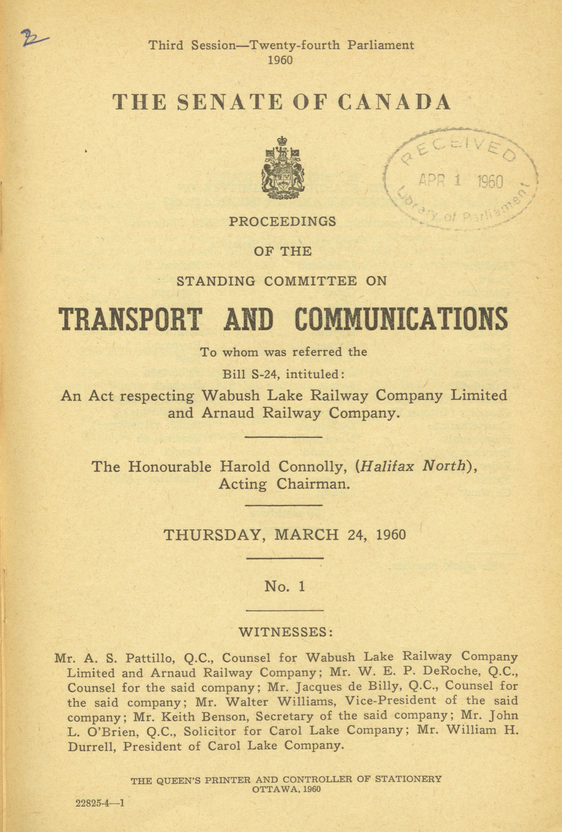 Senate Committees, 24th Parliament, 3rd Session : Standing Committee on Transport and Communications, vol. 1