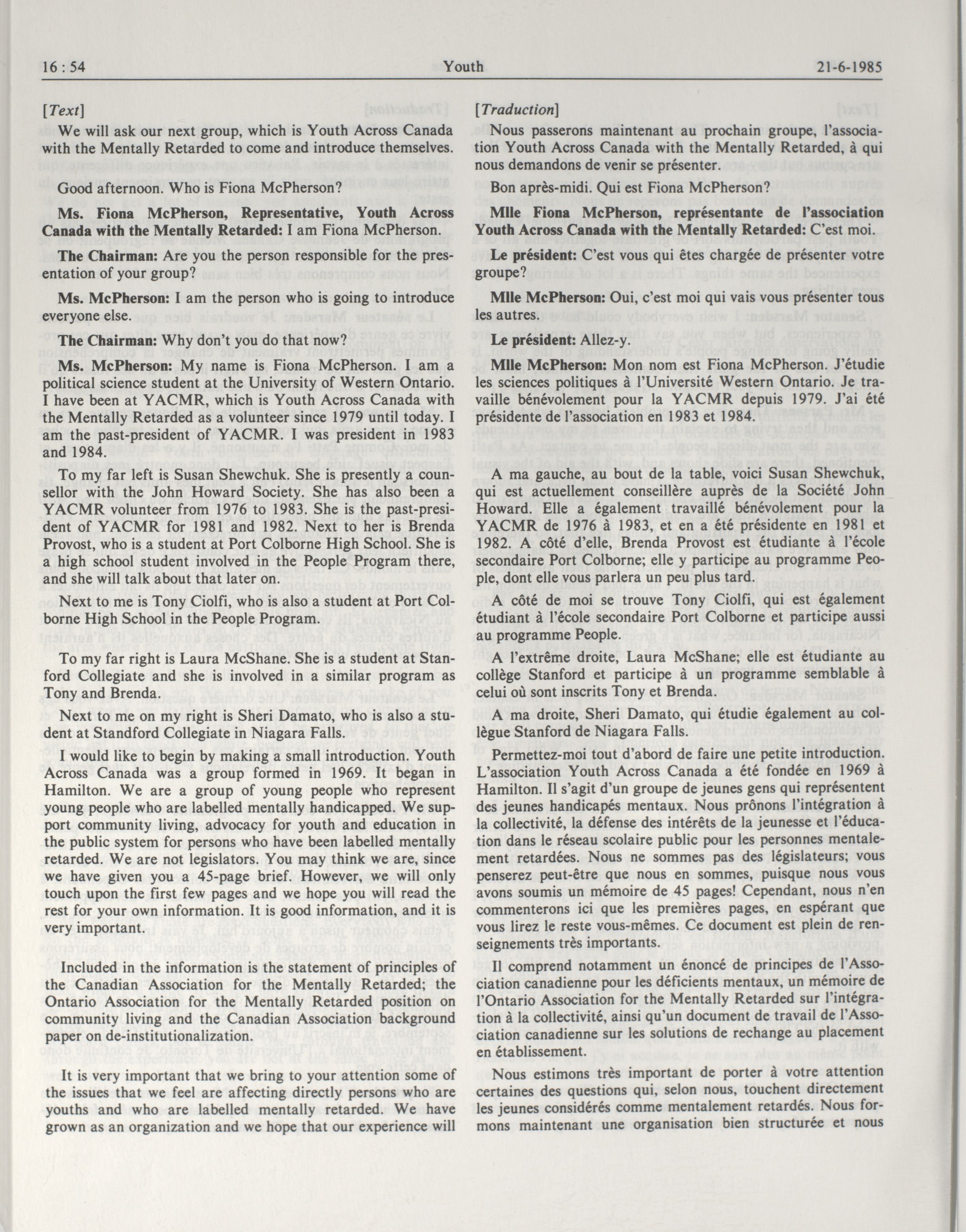 Senate Committees, 33rd Parliament, 1st Session : Special Committee on Youth, vol. 1 no. 1-16 = Comités du Sénat, 33e Législature, 1re Session : Comité spécial sur la jeunesse, vol. 1 no. 1-16