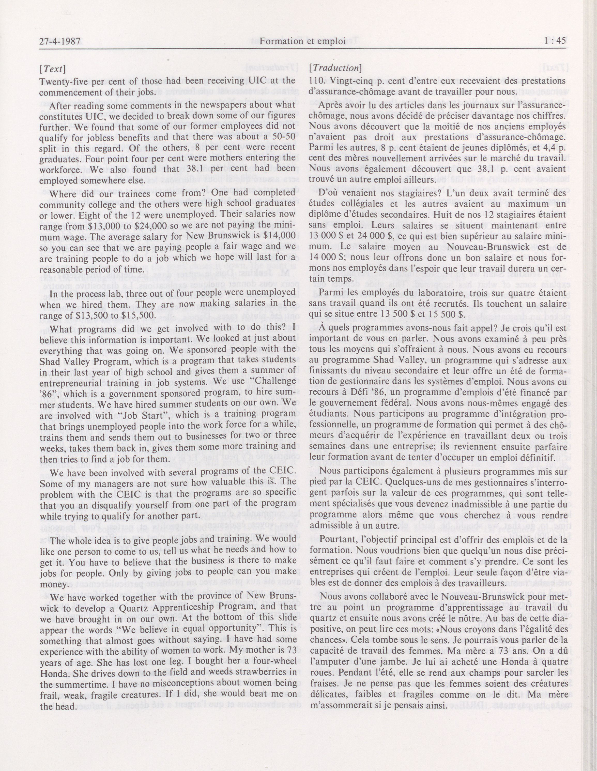 Senate Committees, 33rd Parliament, 2nd Session : Sub-Committee on Training and Employment, vol. 1 no. 1-10 = Comités du Sénat, 33e Législature, 2e Session : Sous-comité de la formation et de l'emploi, vol. 1 no. 1-10
