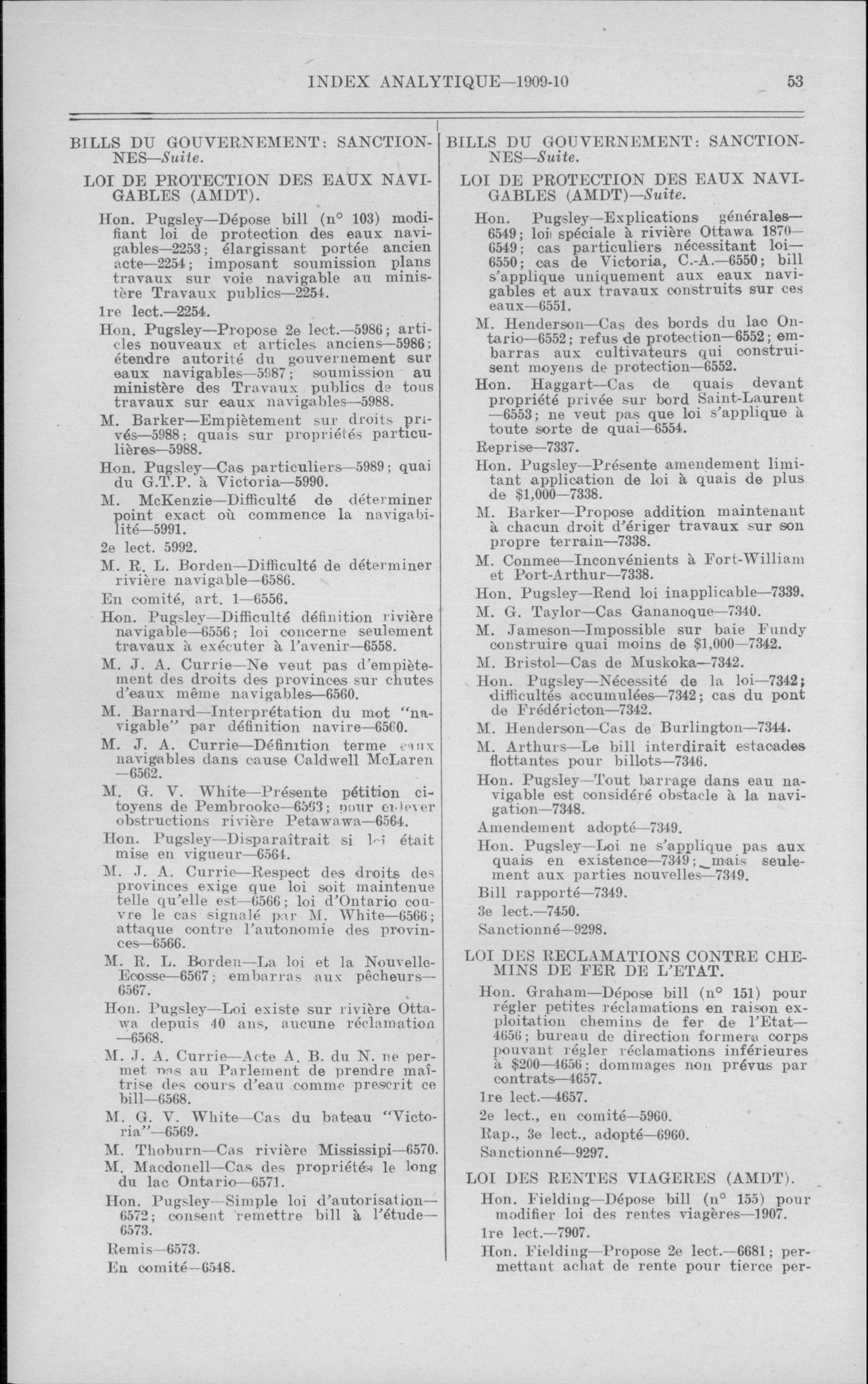 Débats de la Chambre des communes, 11e Législature, 2e Session : Index