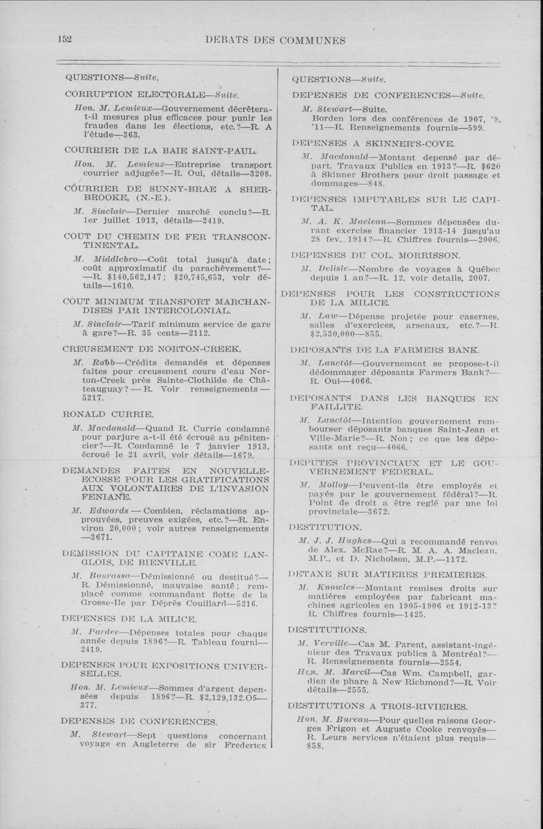 Débats de la Chambre des communes, 12e Législature, 3e Session : Index