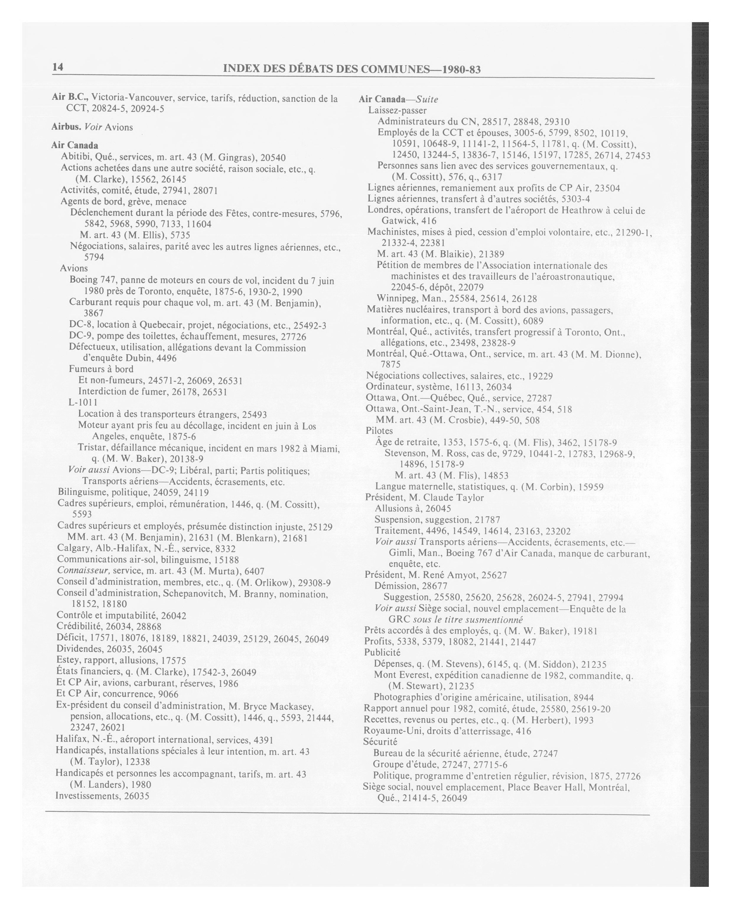 Débats de la Chambre des communes, 32e Législature, 1re Session : Index