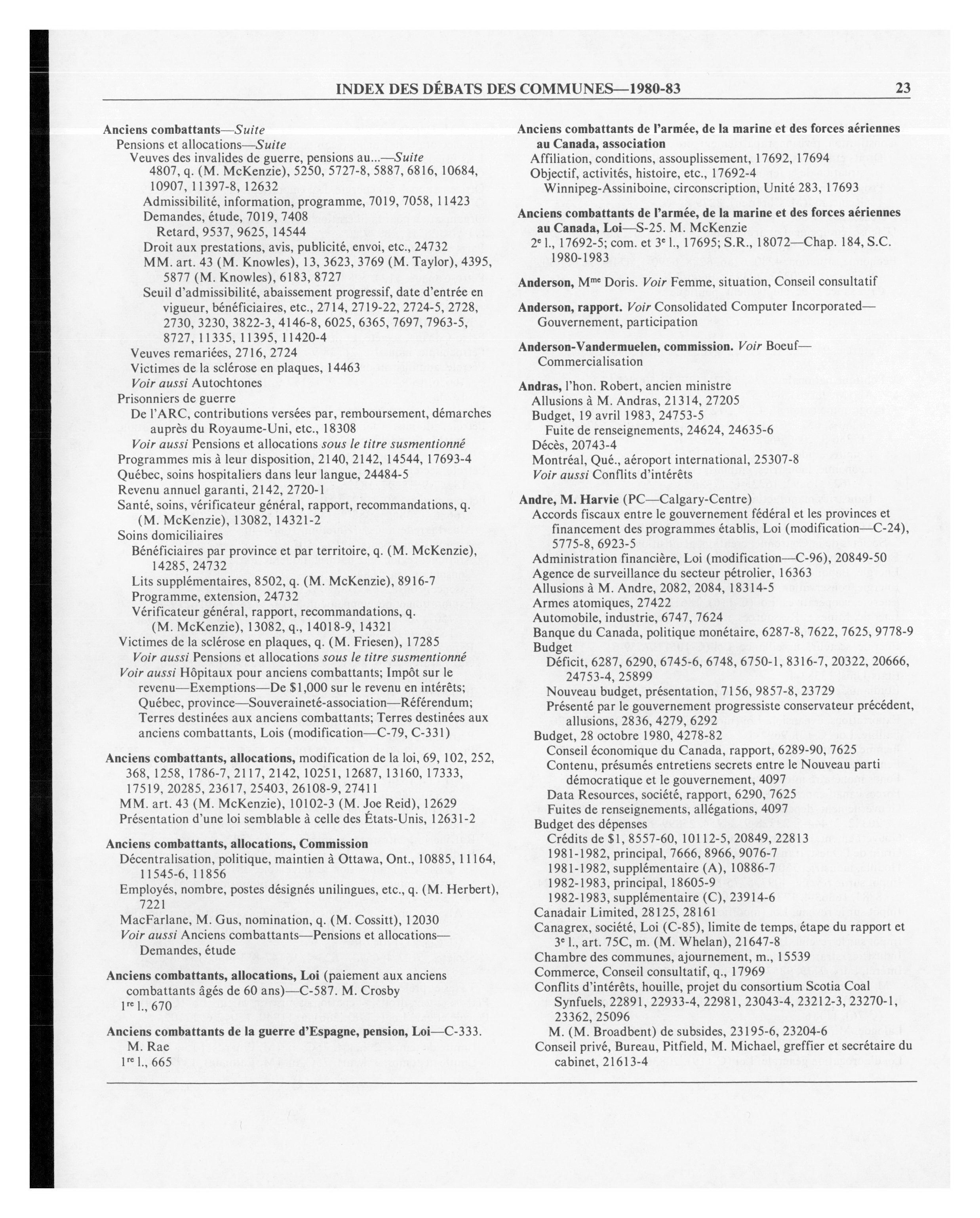 Débats de la Chambre des communes, 32e Législature, 1re Session : Index