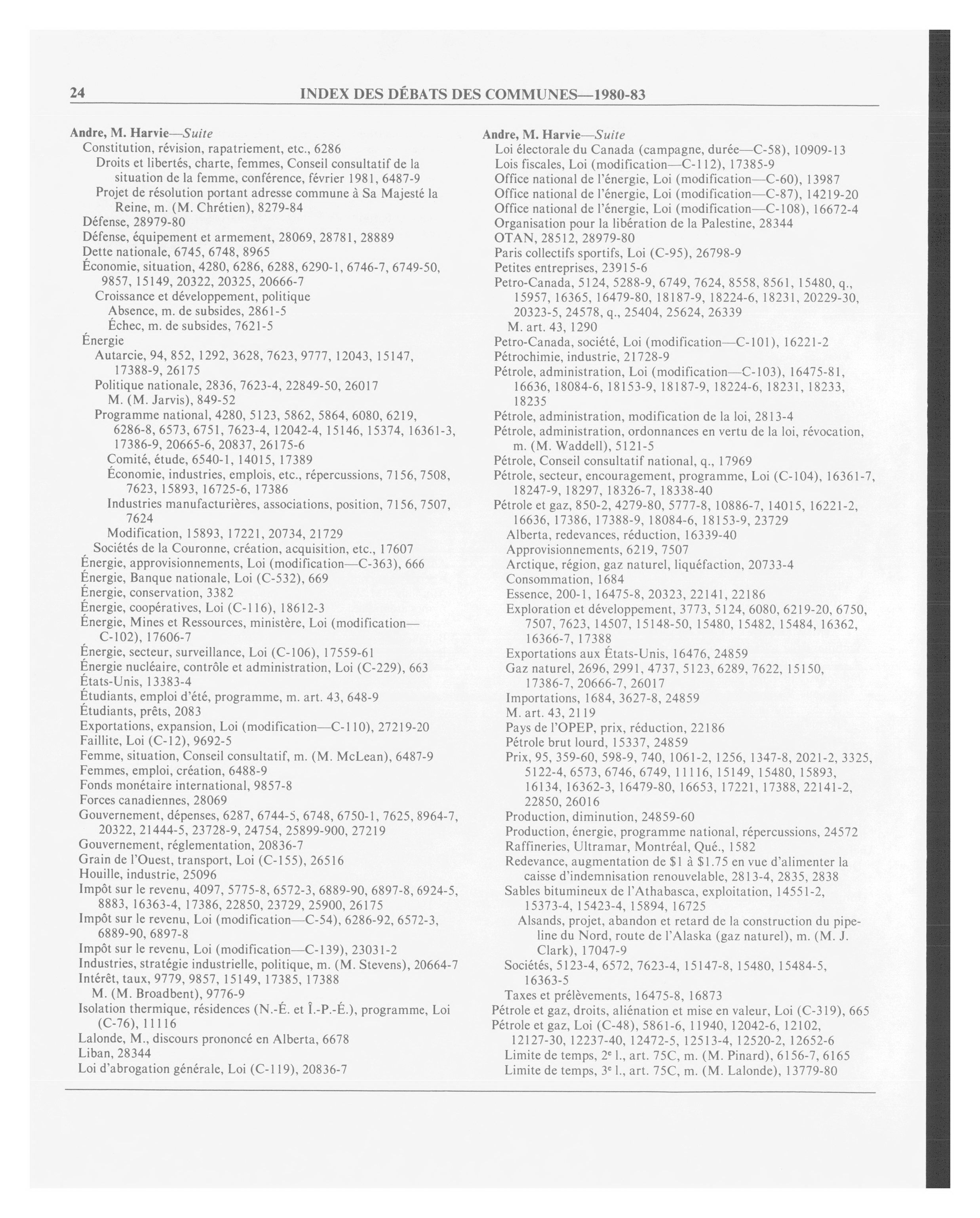 Débats de la Chambre des communes, 32e Législature, 1re Session : Index
