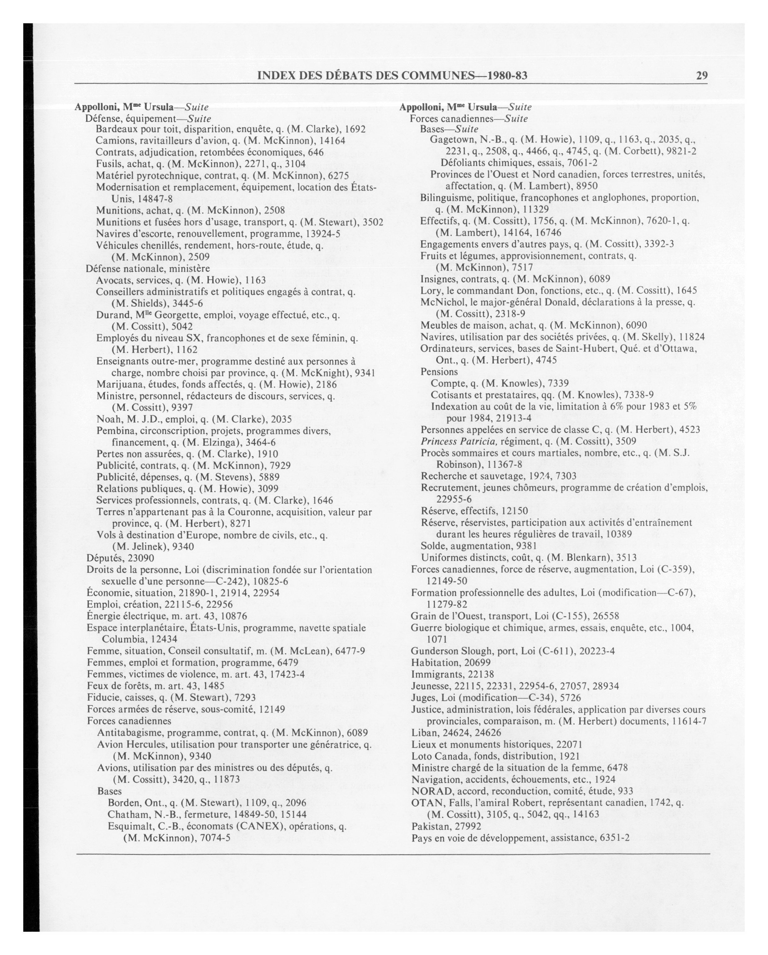 Débats de la Chambre des communes, 32e Législature, 1re Session : Index