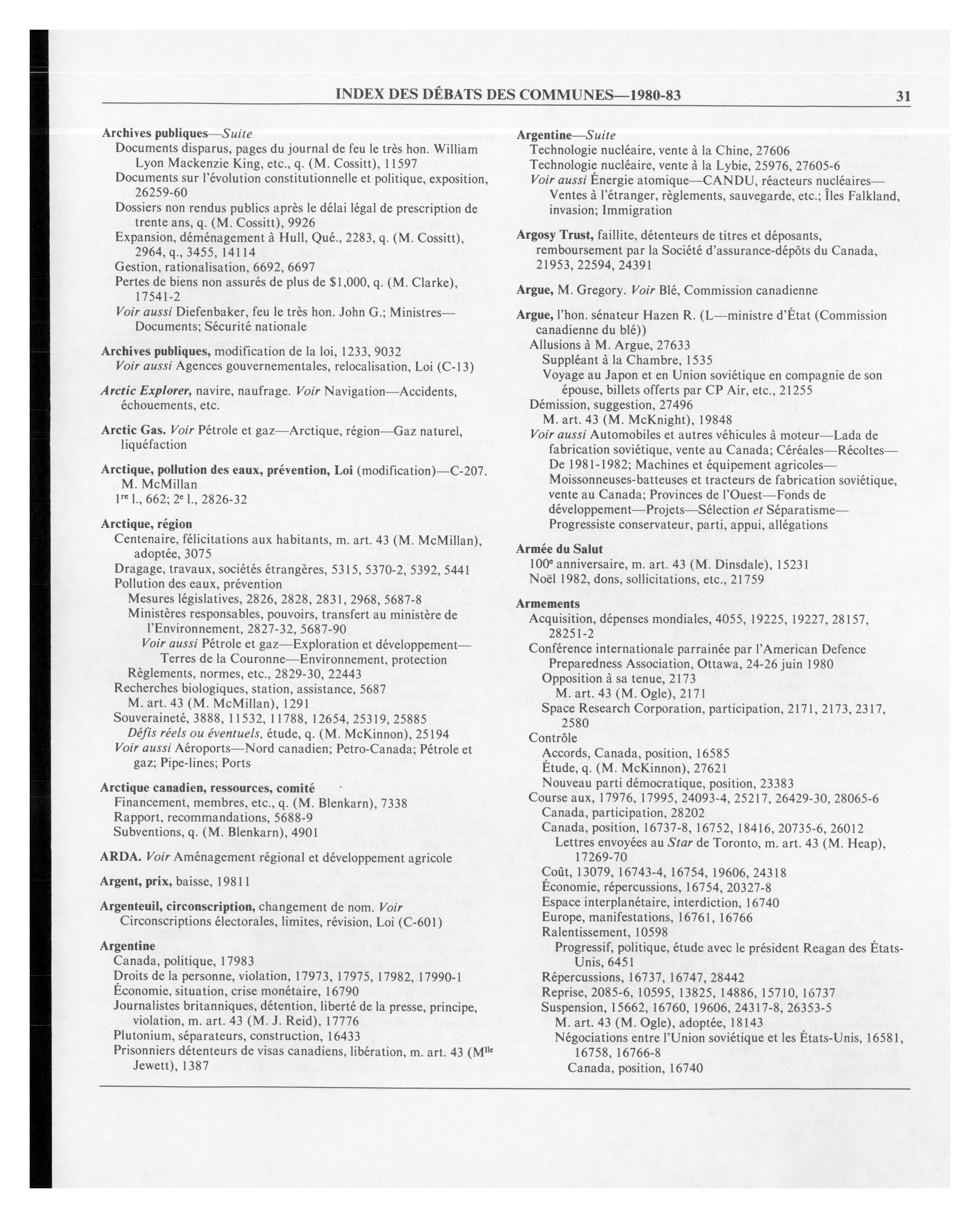Débats de la Chambre des communes, 32e Législature, 1re Session : Index