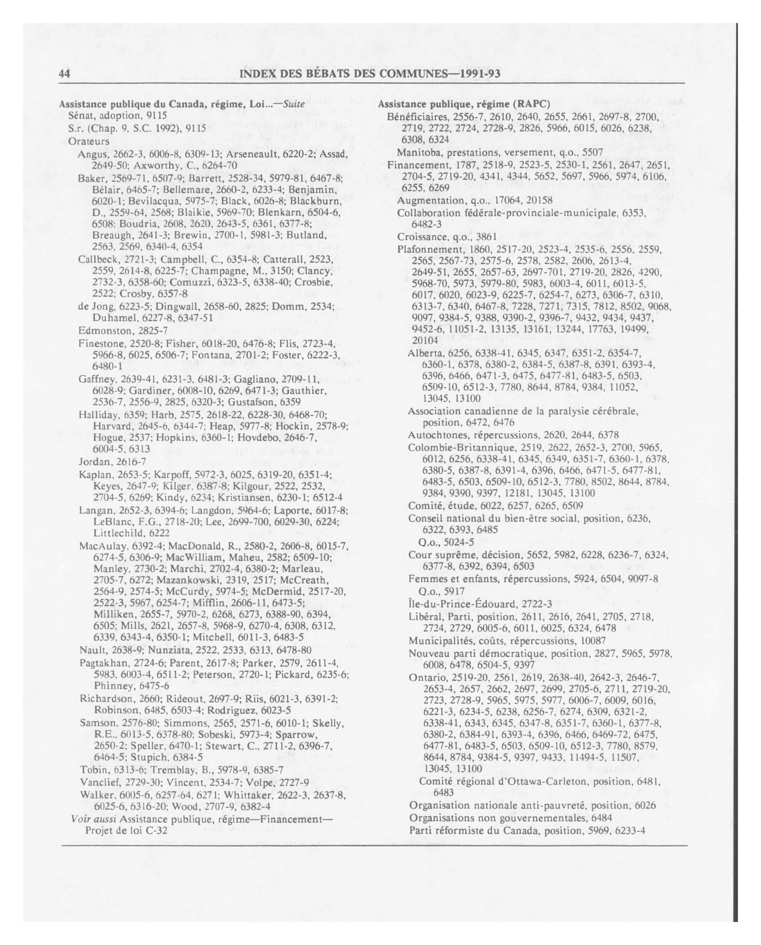 Débats de la Chambre des communes, 34e Législature, 3e Session : Index