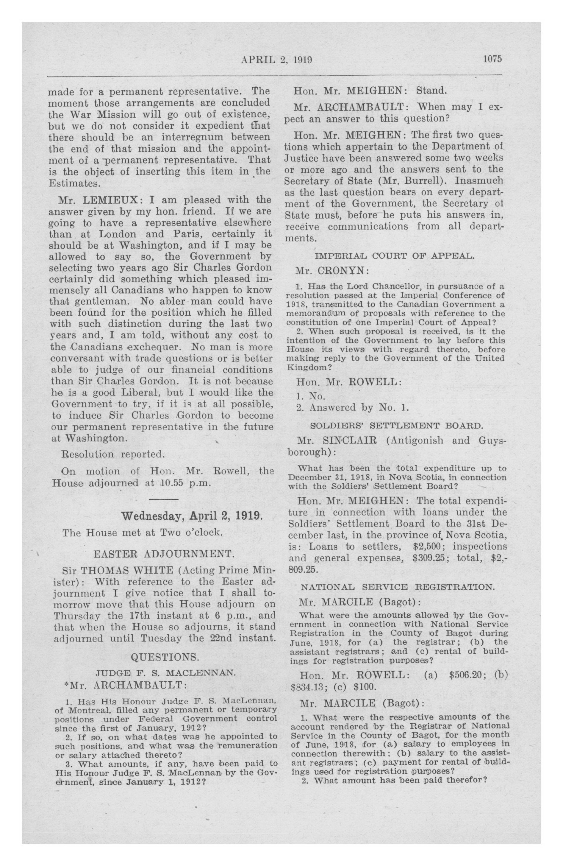 House of Commons Debates, 13th Parliament, 2nd Session : Vol. 2