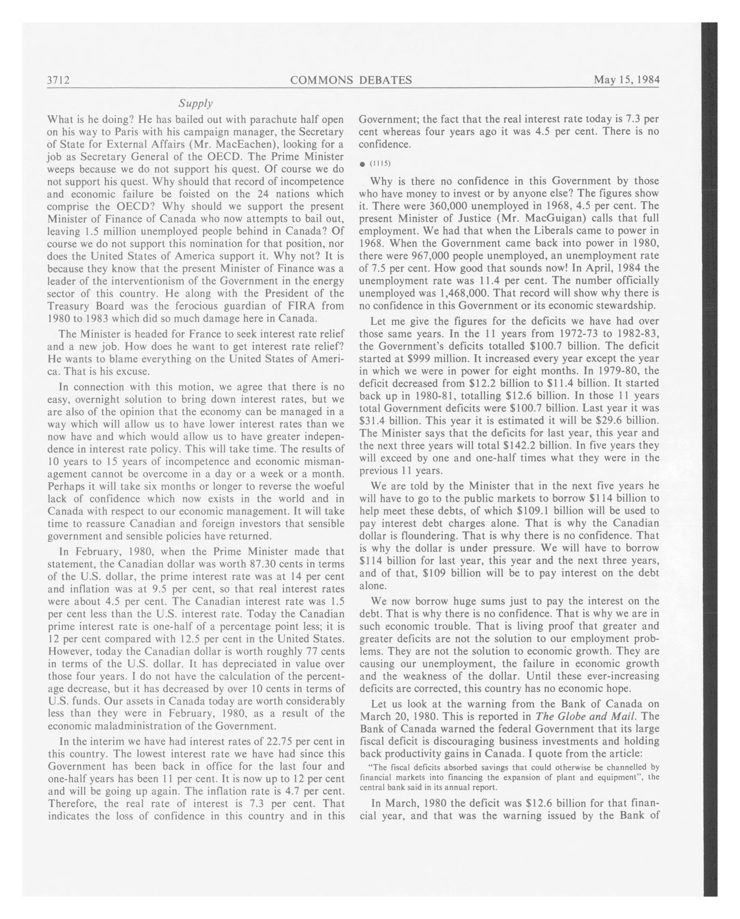 Trudeau, Pierre Elliott (1983-12-07 - 1984-06-29), Turner, John Napier (1984-06-30 - 1984-07-09)
