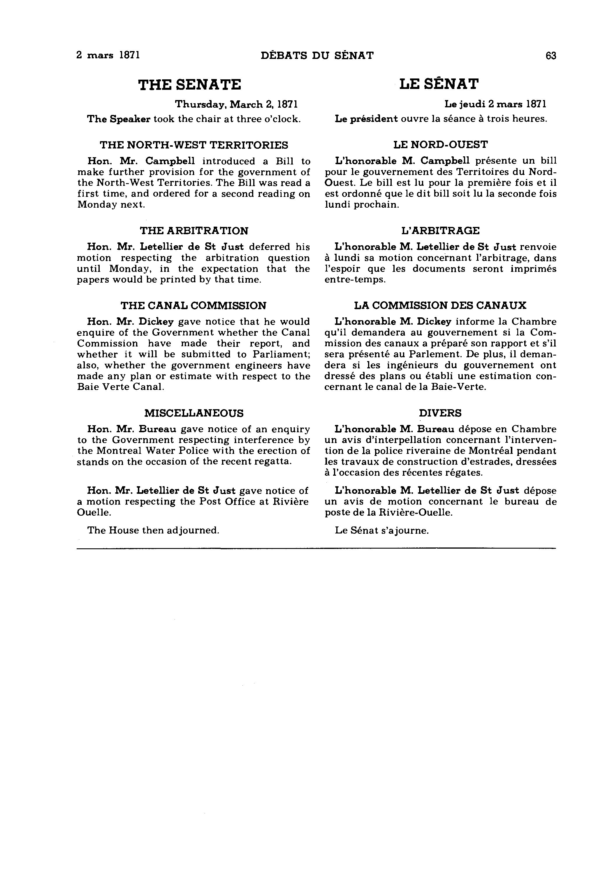 « Débats du Sénat, 1re Législature, 4e Session