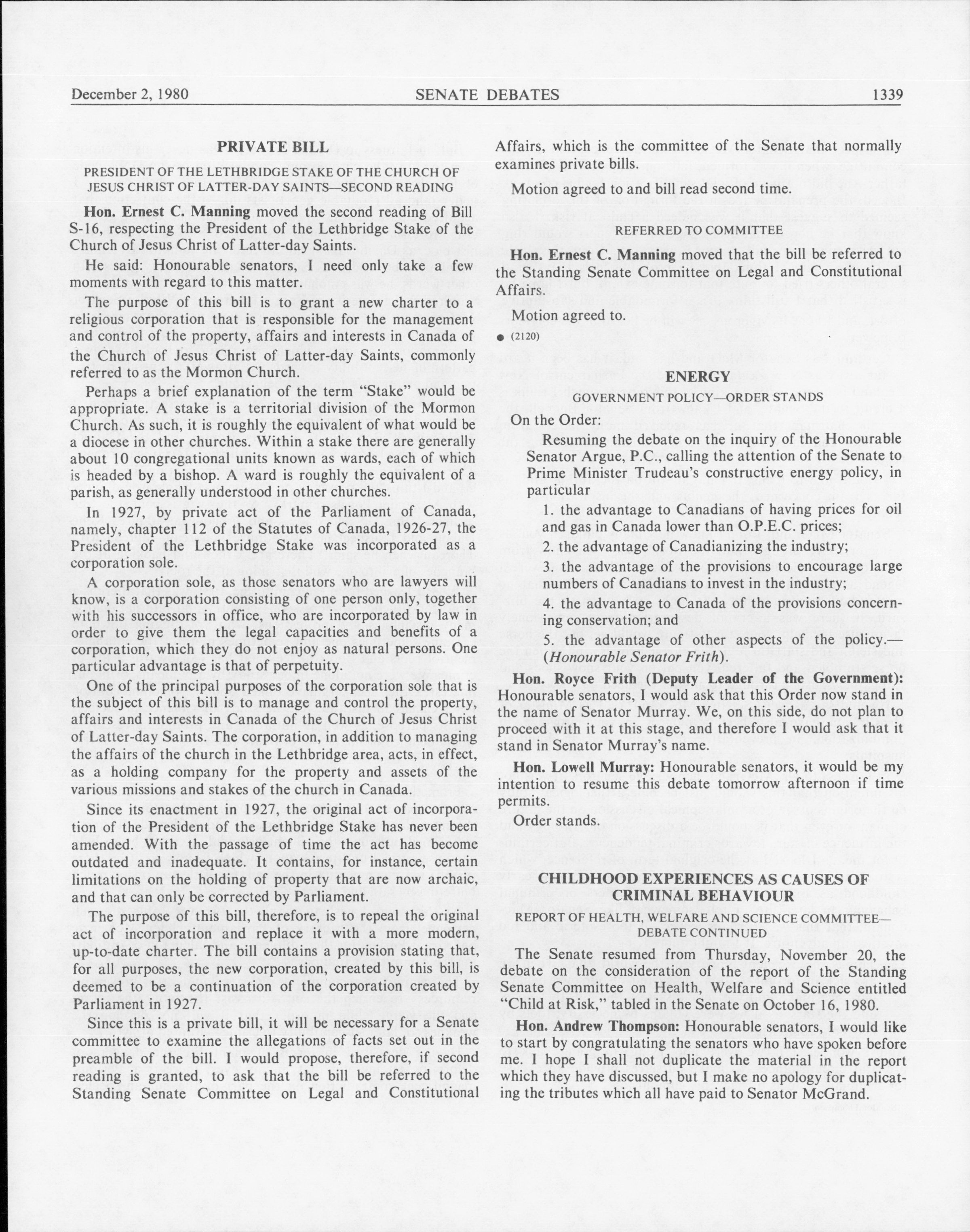 « Senate Debates, 32nd Parliament, 1st Session