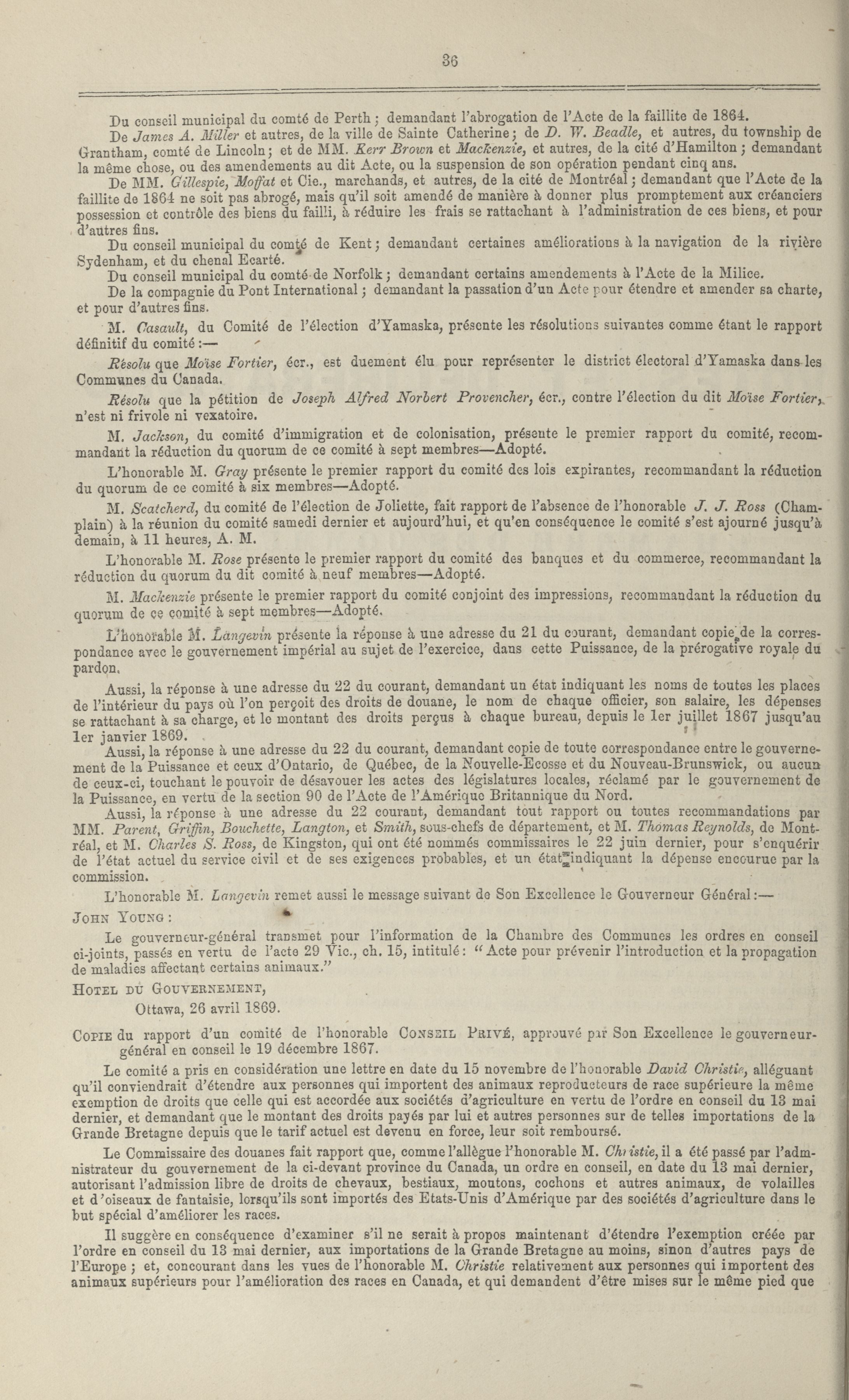 « Procès-verbaux de la Chambre des communes, 1re Législature, 2e Session