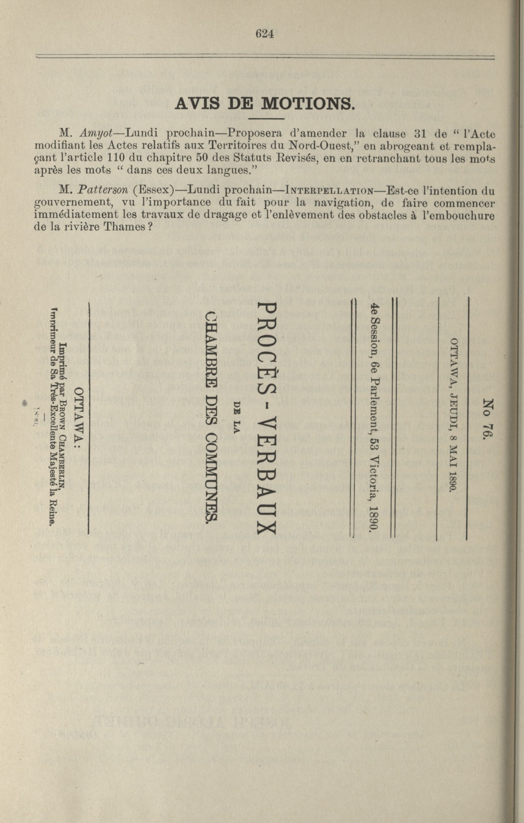 « Procès-verbaux de la Chambre des communes, 6e Législature, 4e Session