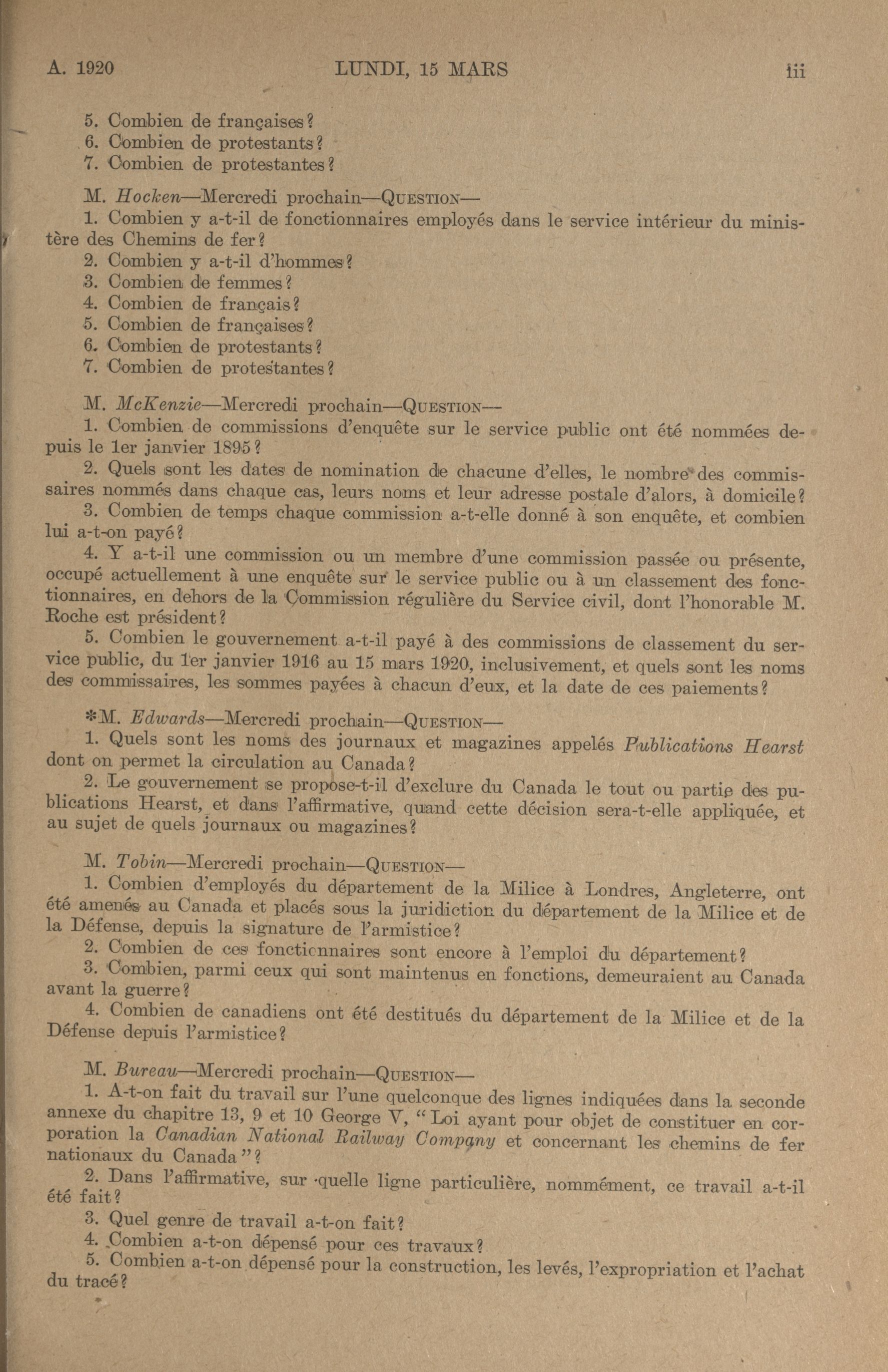 « Procès-verbaux de la Chambre des communes, 13e Législature, 4e Session