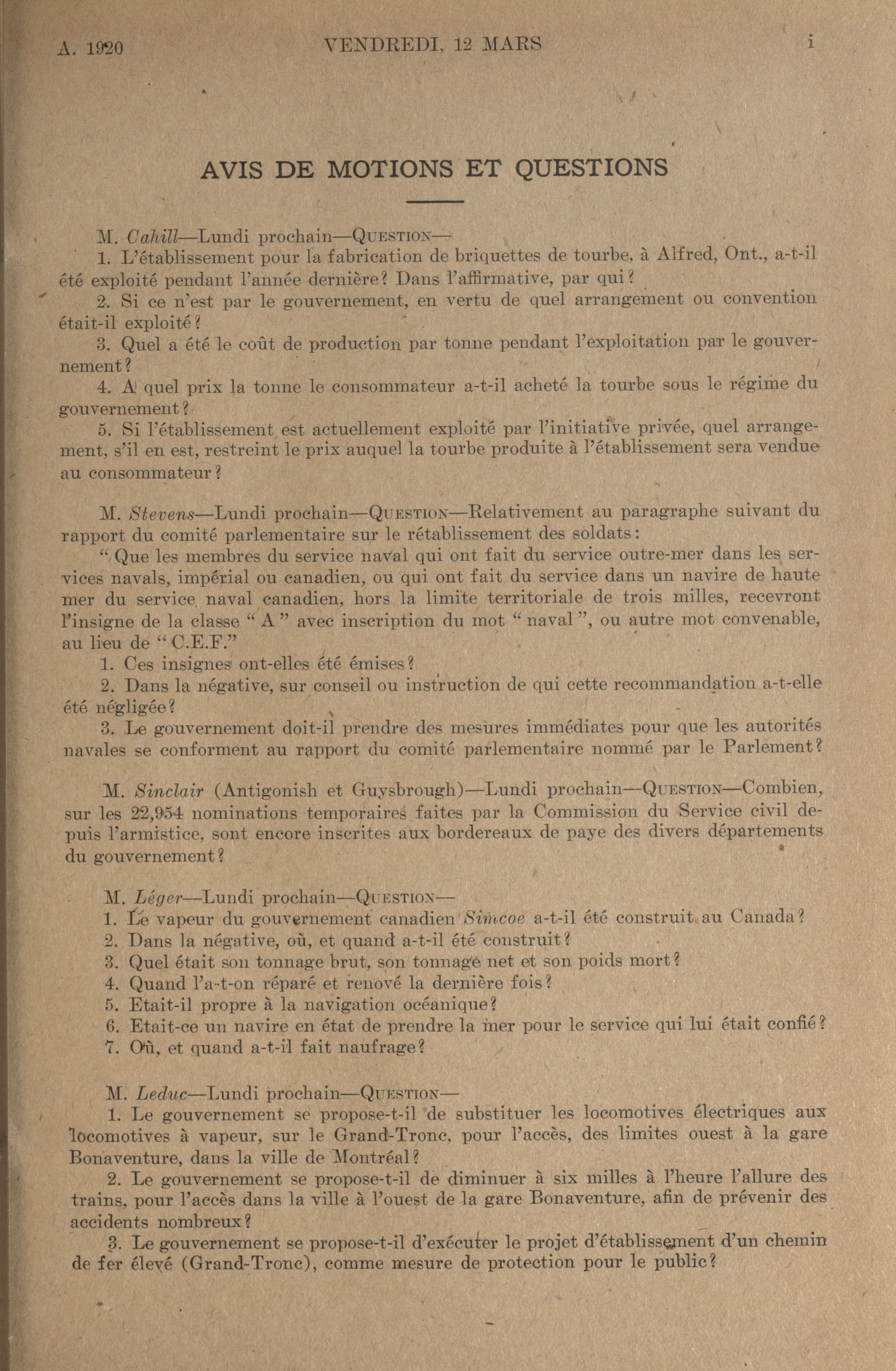Procès-verbaux de la Chambre des communes, 13e Législature, 4e Session : 1-86