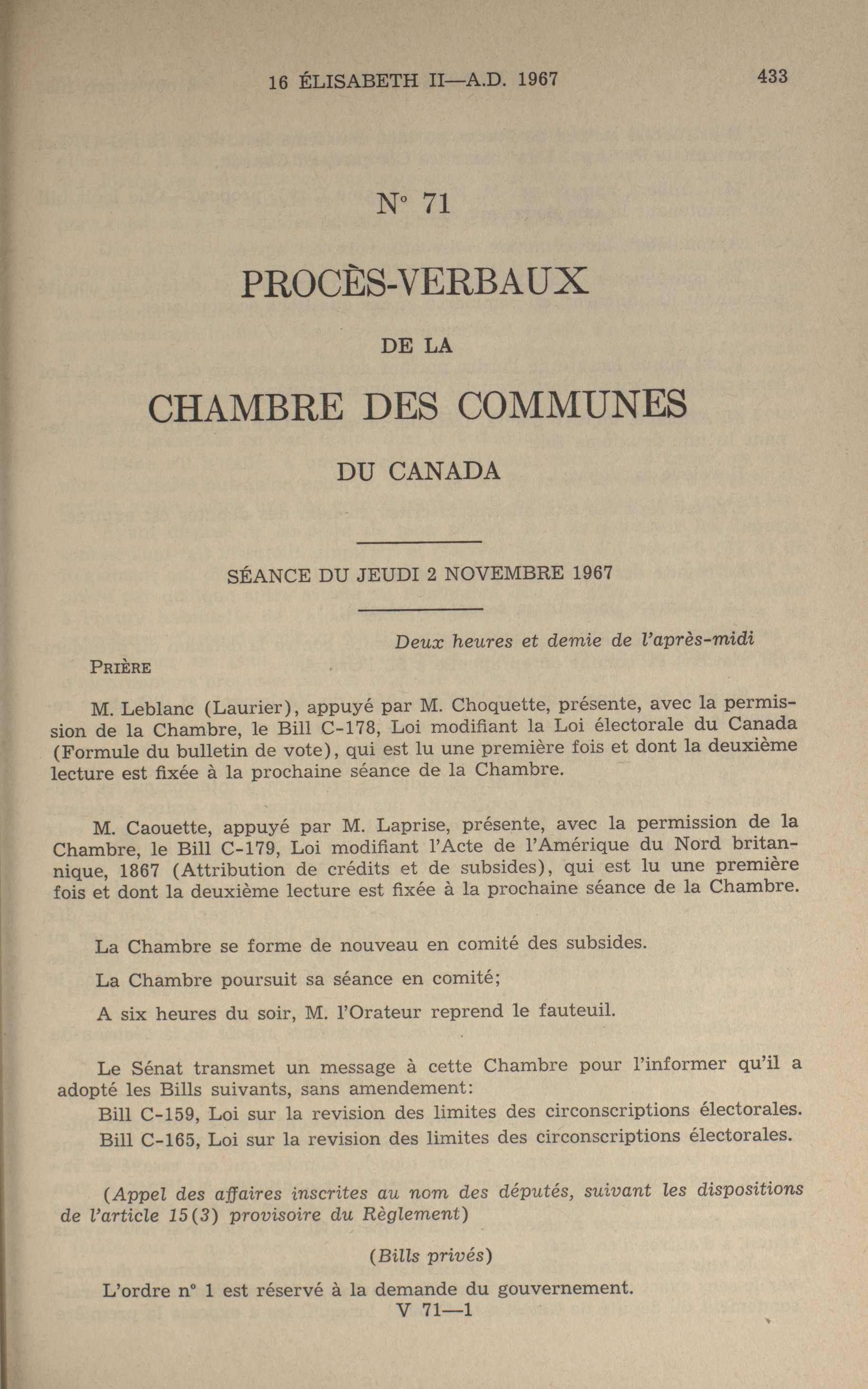 Procès-verbaux de la Chambre des communes, 27e Législature, 2e Session : 65-155