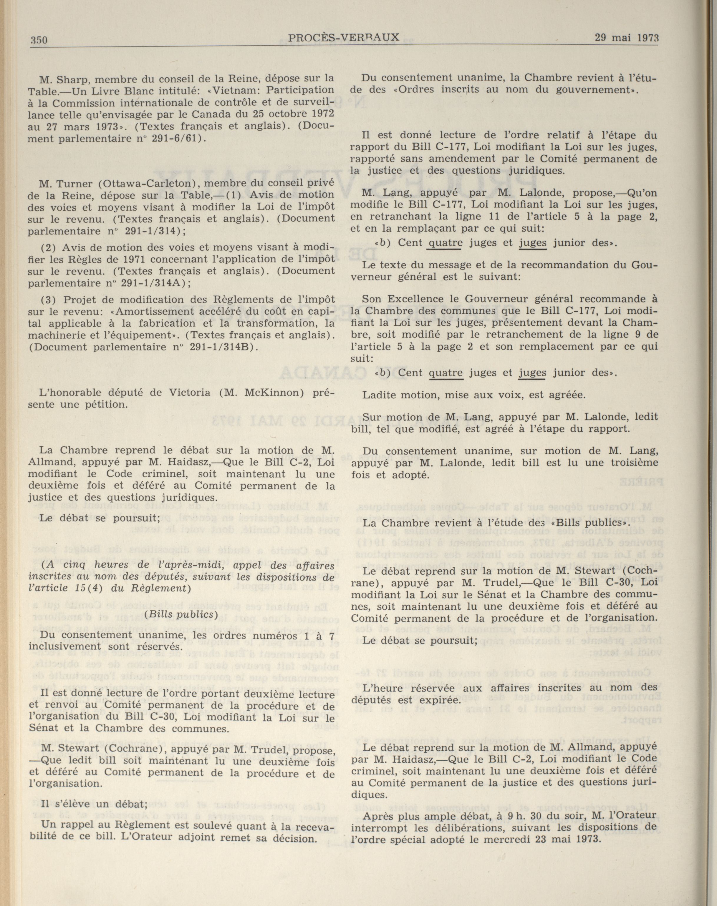 « Procès-verbaux de la Chambre des communes, 29e Législature, 1re Session