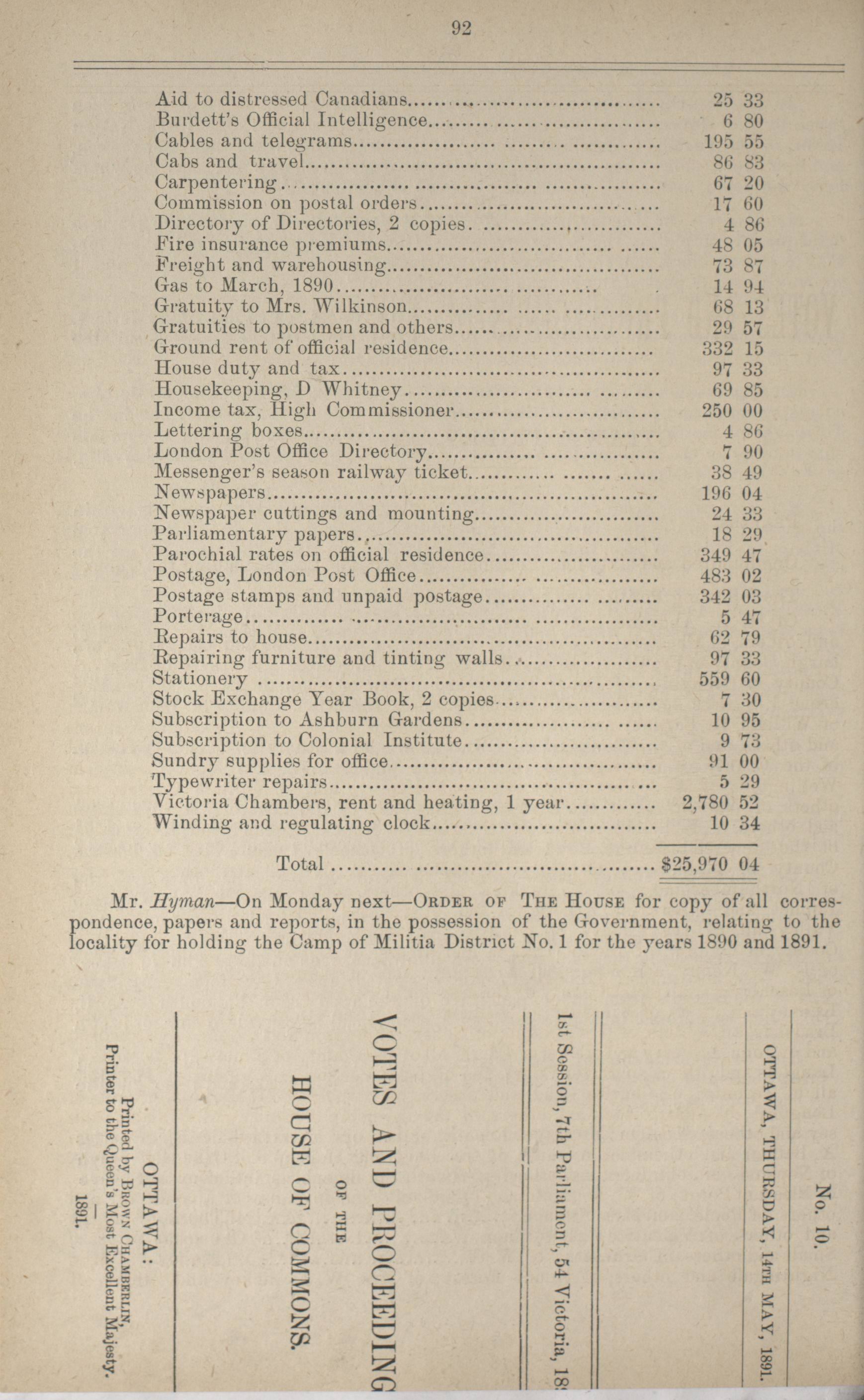 « House of Commons Votes and Proceedings, 7th Parliament, 1st Session