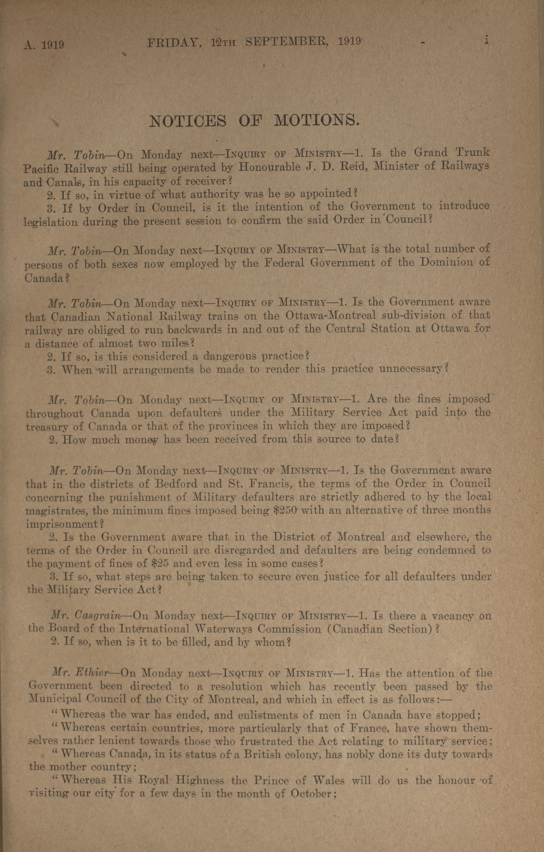 House of Commons Votes and Proceedings, 13th Parliament, 3rd Session : 1-50