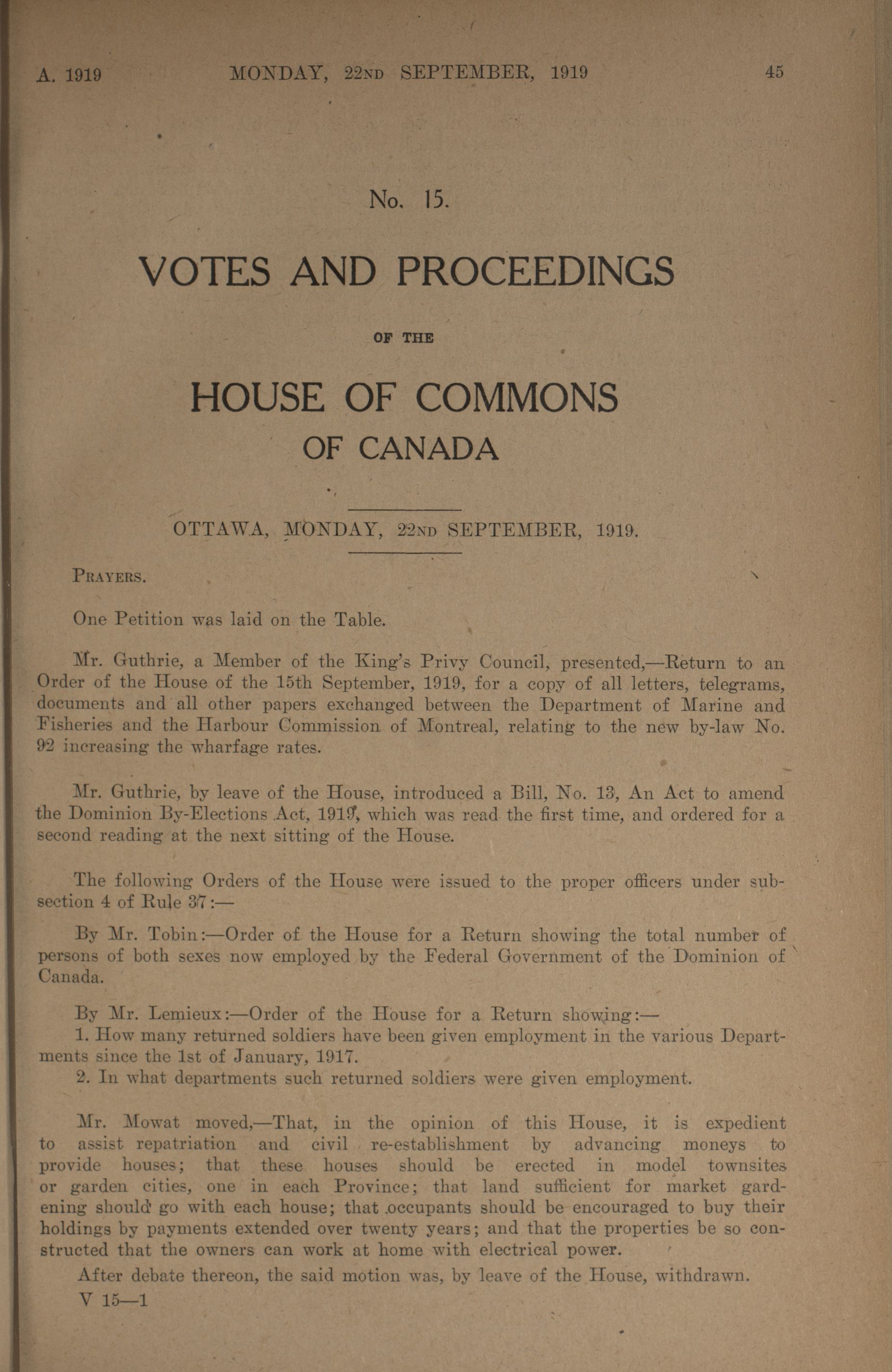 House of Commons Votes and Proceedings, 13th Parliament, 3rd Session : 1-50